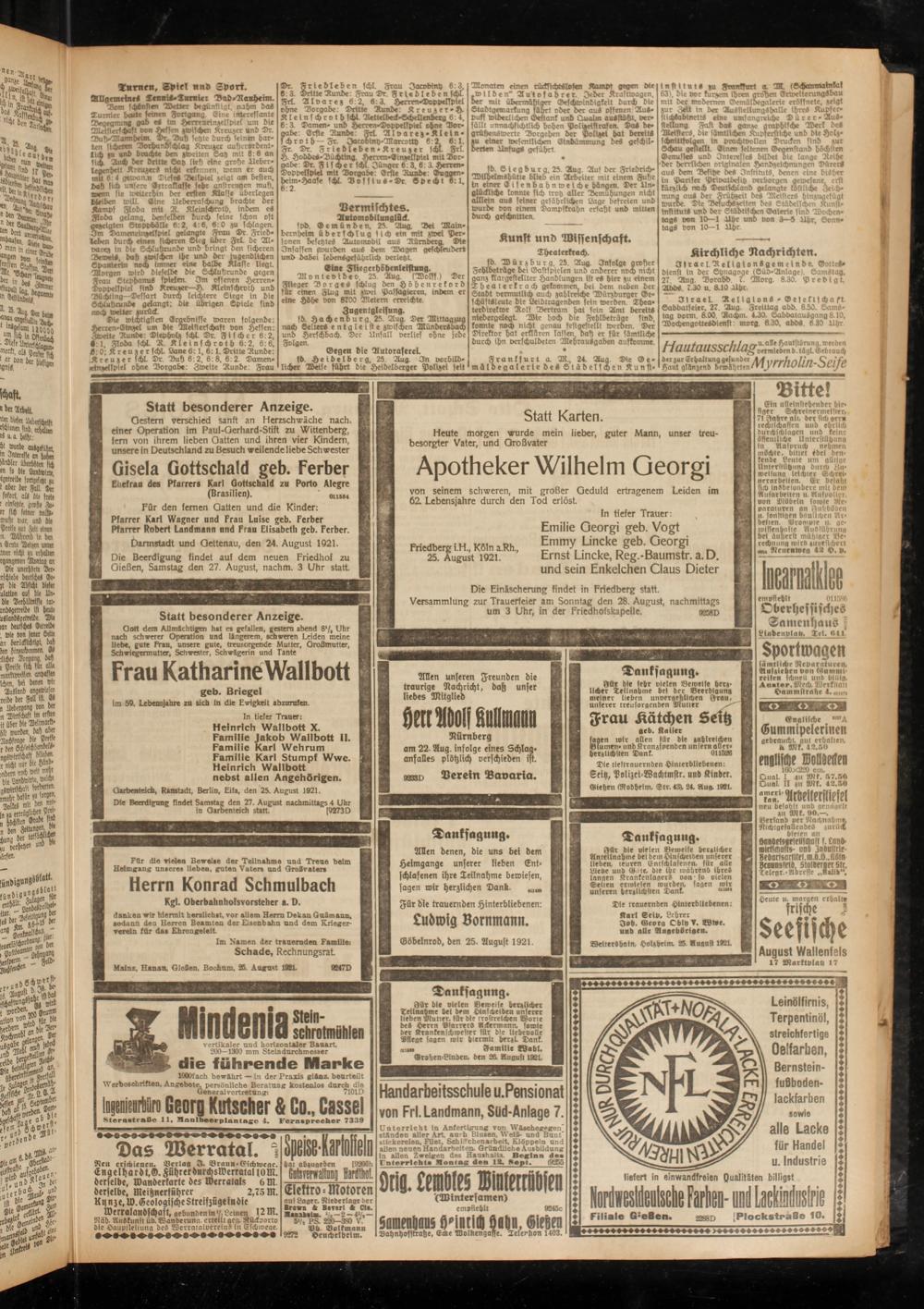 Darmstadt und Gettenau, den 24. August 1921.
