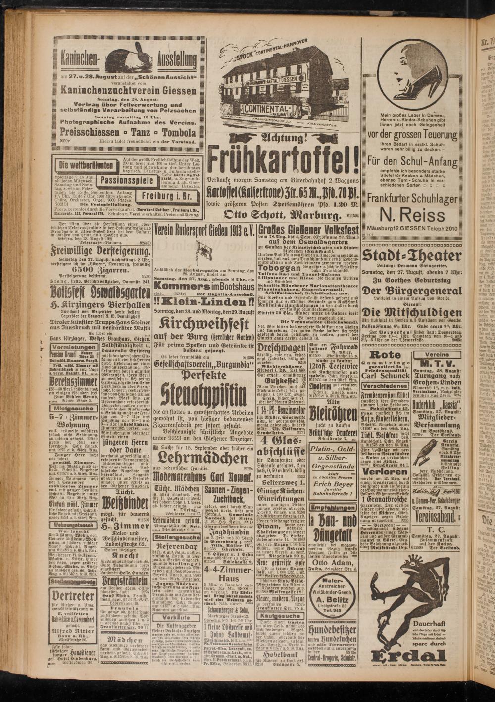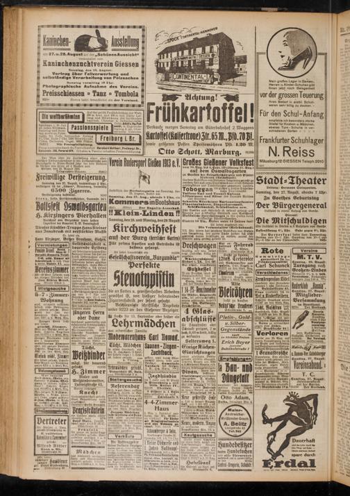 Beschleunigte schriftliche Angebote unter 9223 an den Gießener Anzeiger. Sti Suche für 15. September ober früher ein Lehrmädchen aus ordentlicher Familie. 9179c