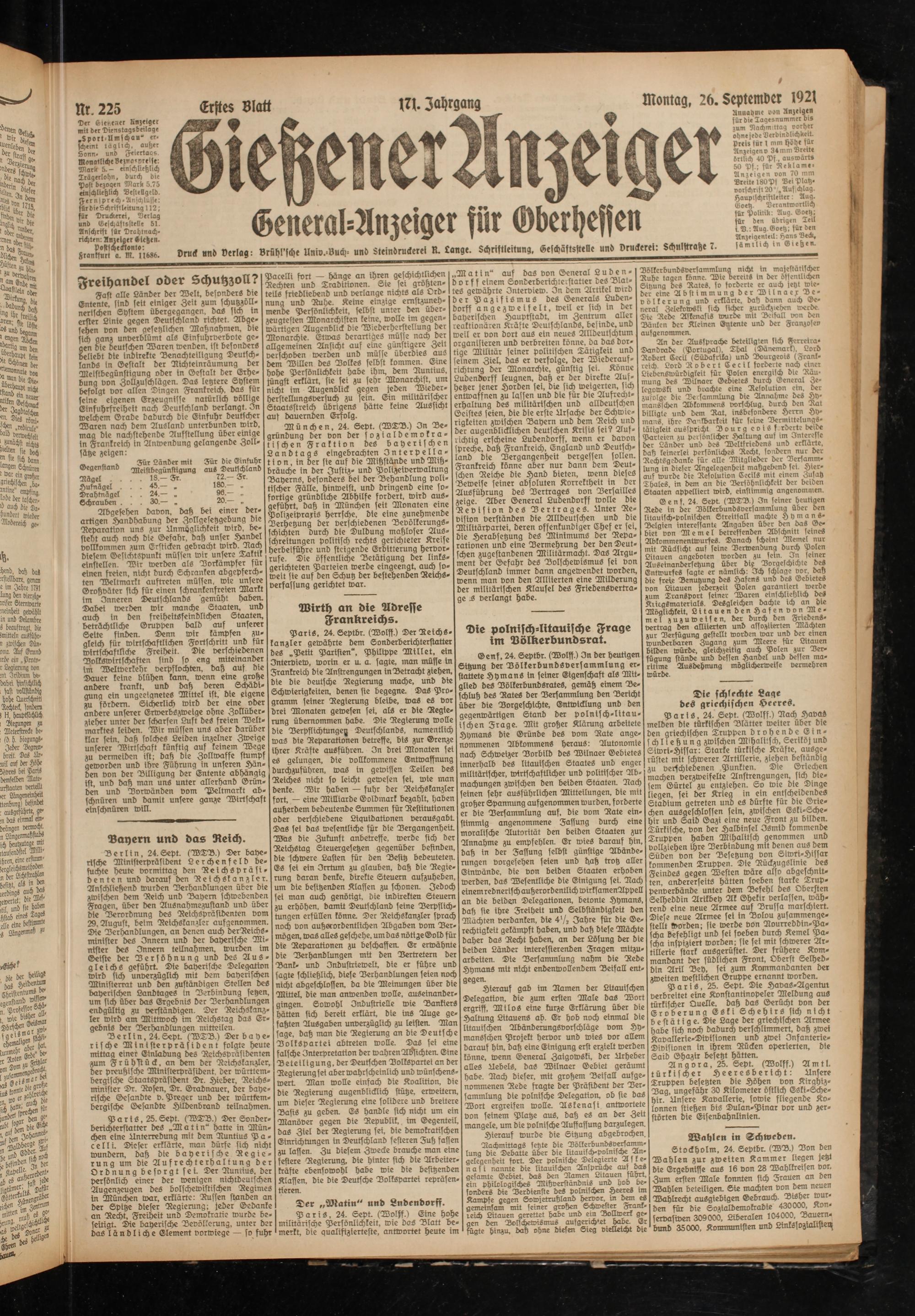 Drud OT» Verlag: vriihl'sch. Unw.-Vuch: und Steindruckerri k. Lange. Schriftleitung, Se!ch°,t;ftelle und vruckerei: Schnlftratze 7. l-m.uch ,n G.-b--