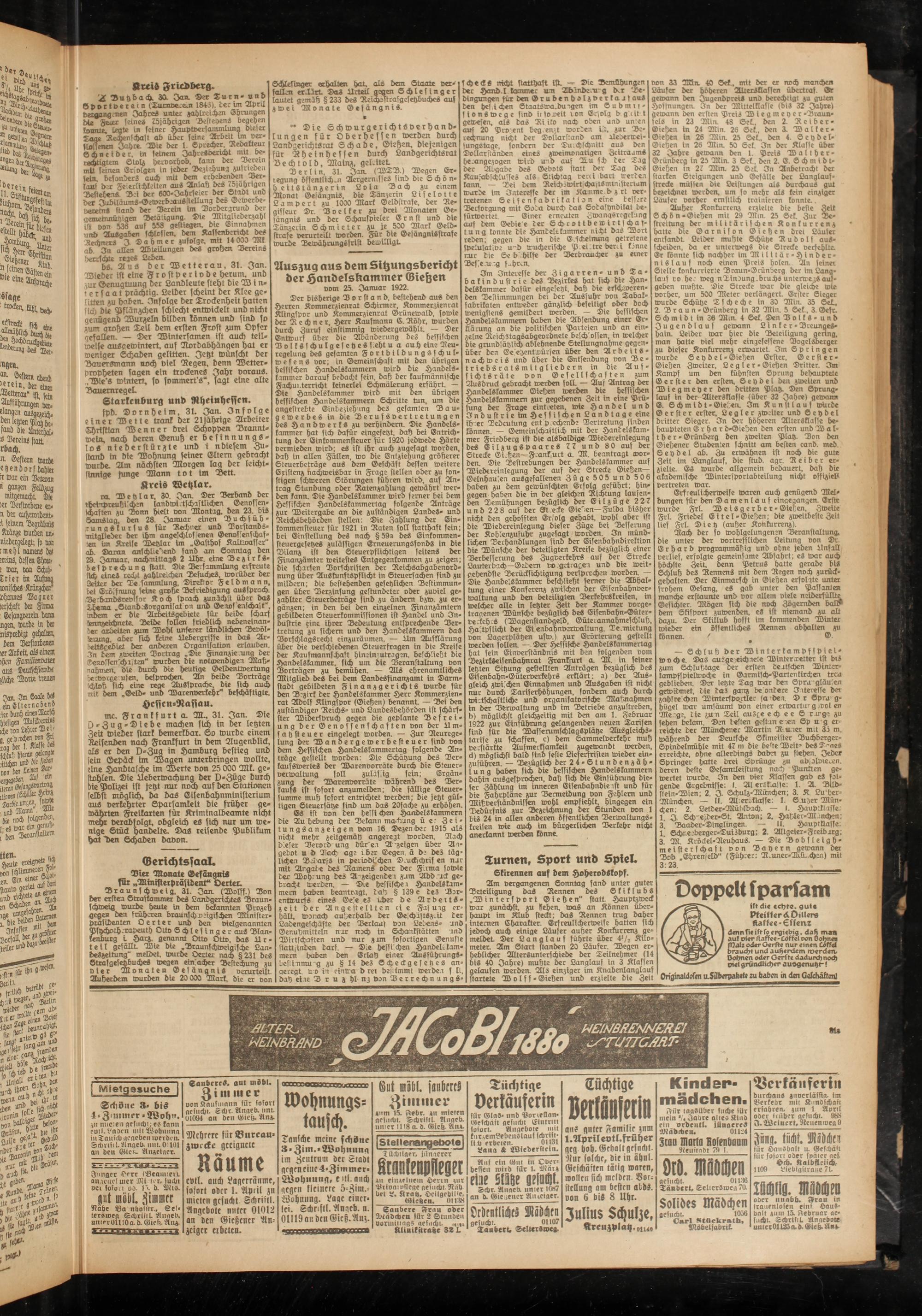 Auszug aus dem Sitzungsbericht der Handelskammer Gießen