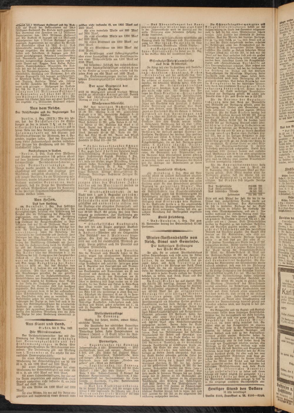 Für die Kapitalkleinrentner hatte das Reich auf die Zeit vom 1. April bis 30. September 1922 450 Millionen Mark zur Verfügung gestellt. Diese Mittel wurden unter der Bedingung gegeben, daß die Länder sich mit Vs un5 die Gemeinden mit 1 6 an den Kosten beteiligten. Auf Gießen ftab folgende Beträge entfallen: