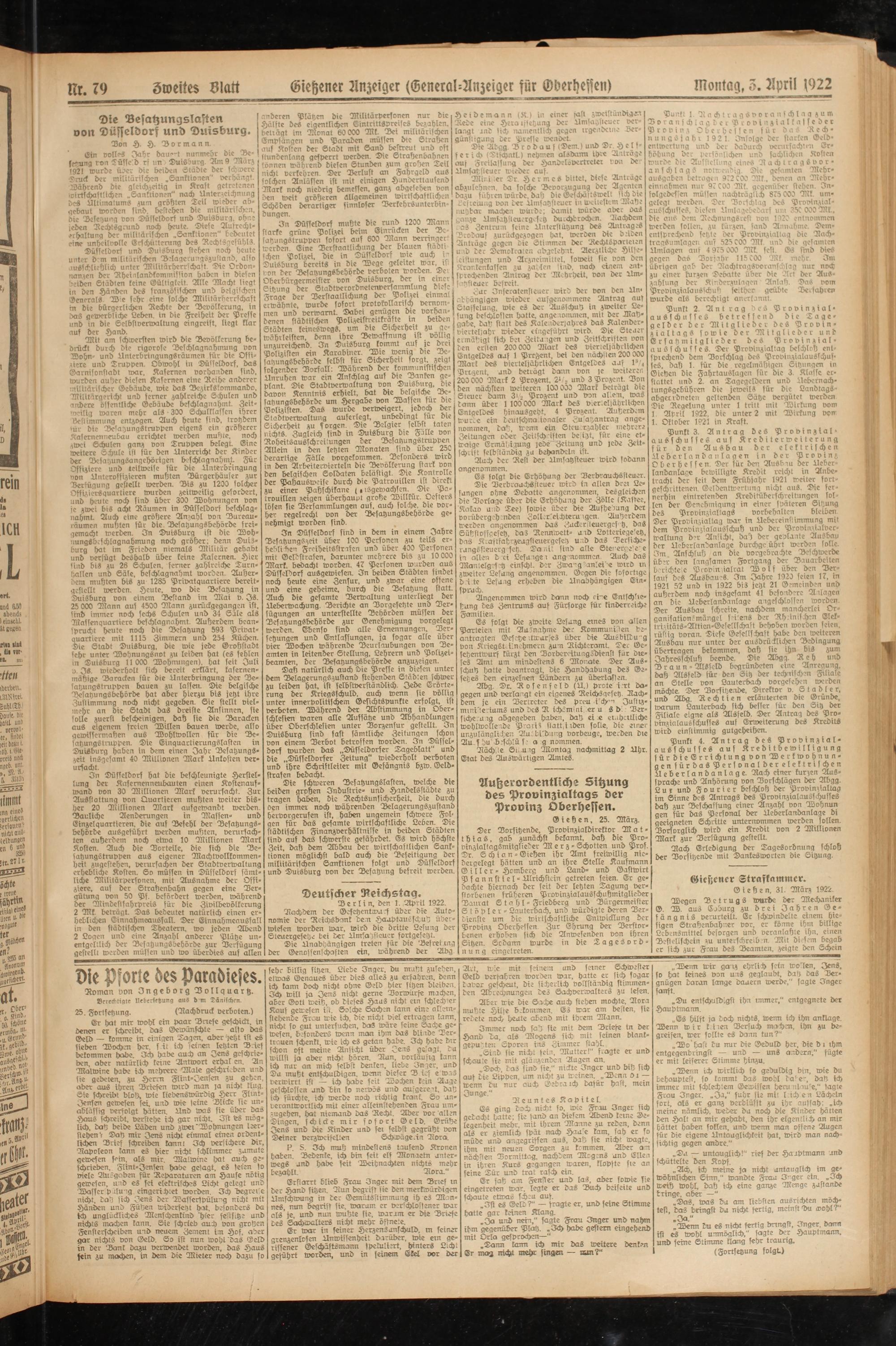 Hr. 79 Zweiter Blatt Sietzener Anzeiger (General-Anzeiger für Gderhessenf Montag, 5. April (922