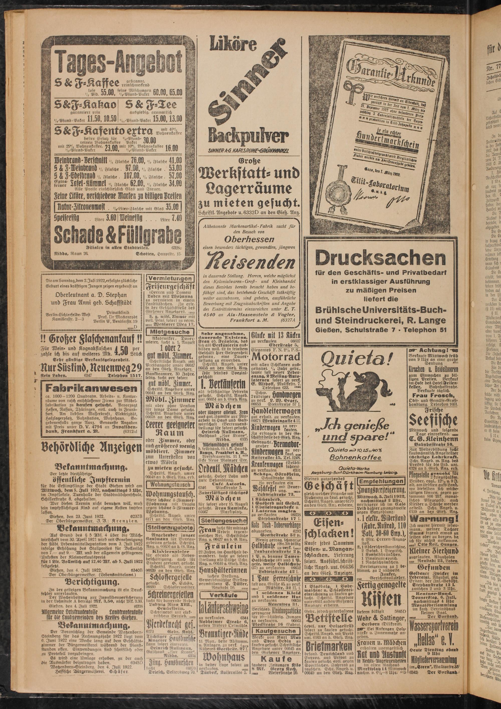 Watzenborn-Steinberg, den 4. Juli 1922.