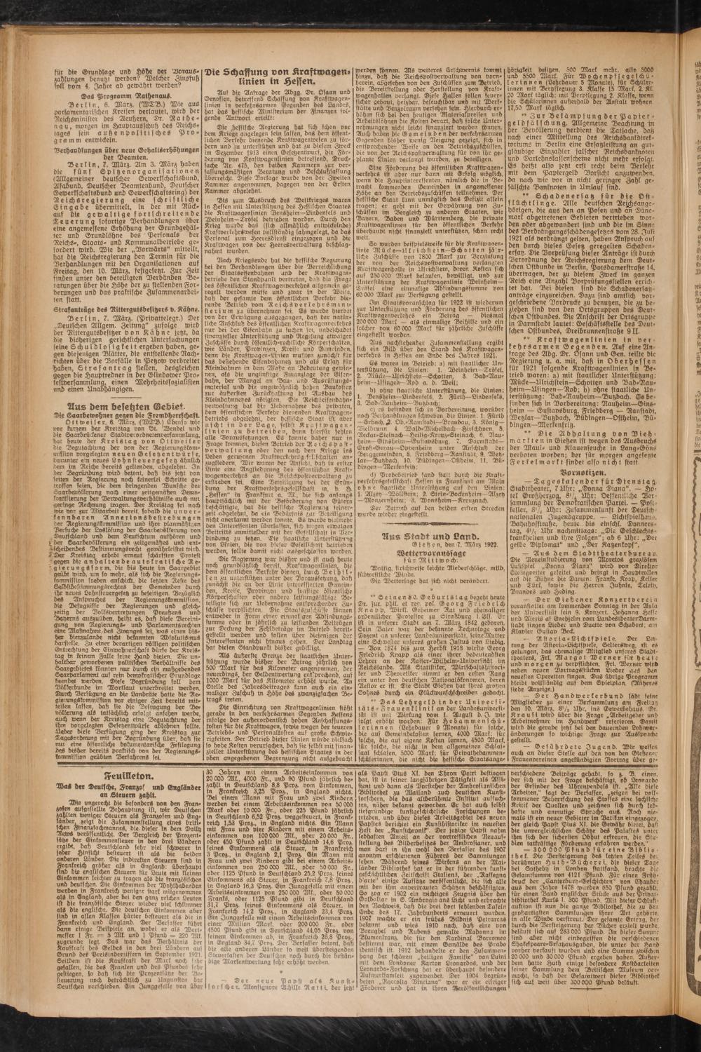 " Deinen 8 0. Geburtstag begeht heute Dr. jur. Phil, et rer pol. Georg Friedrich Knapp, Wirk!. Geheimer Rat und ehemaliger ordentlicher Professor zu Vtraßburg i. Els. Er ist in unserer Stadt am 7. März 1842 geboren. Sein Vater war der bekannte Technologe und Dozent an unserer Landeäunwersität, seineMutter eine Schwester unseres großen Zustus von Liebig. — Von 2874 bis zum Herbst 1918 wirkte Georg Friedrich Knapp als einer ihrer bedeutendsten Lehrer an Der Kcttser-Wilhelm-Aniversttät im Reichslande. Als Statistiker, Wirtschaftshistoriker und Theoretiker- nimmt er den ersten Rang ein unter den deutschen Rationalökonomen, deren Restor er ist. Tie Stadt Gießen hat ihres großen Sohnes durch ein Glückwunschschreiden gedacht.