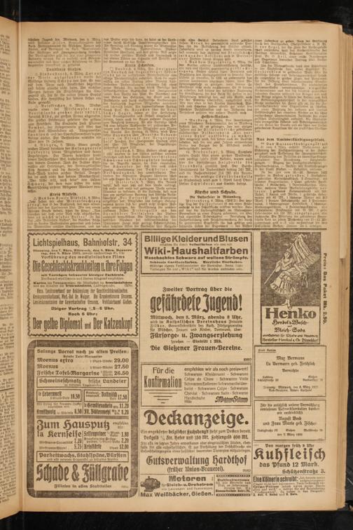 Dienetag;, den 7. N&rii, Mittwoch, den S. Mitra. Donnen* tag, den 9. Mttrz 1922. jeweils nachmittags 4*/* Uhr Vorführung des medizinischen Films