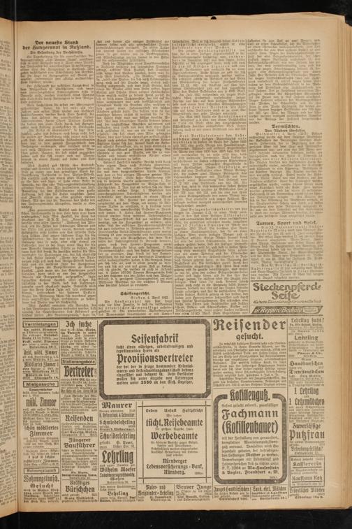 Seifenfabrik sucht einen rührigen, arbeitrfreudigev und repräsentadlen Herrn als Provisionsvertreter der bei der in Frage kommenden Kolonial’ waren- und Zeisenhandlunaskundschaft bestens eingeführt und betannt ist. Veste Verläufer wollen fich unter Angabe von Referenzen melden unter 3550 an den Sieh. Anzeiger.