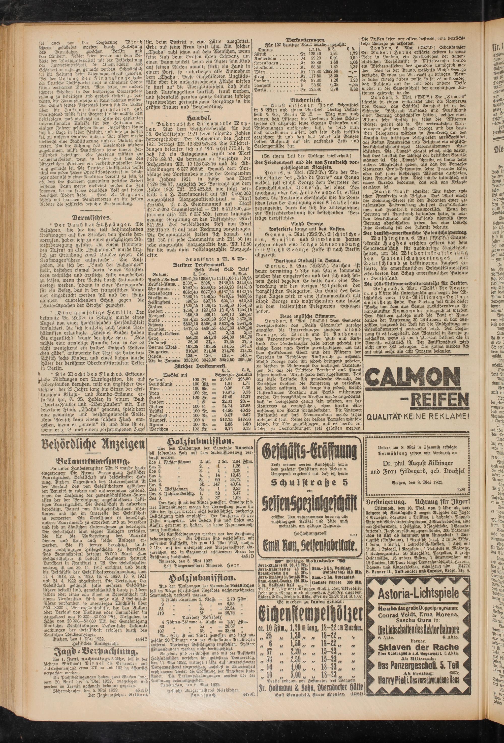 Reiskirchen, den 6. Mai 1922.