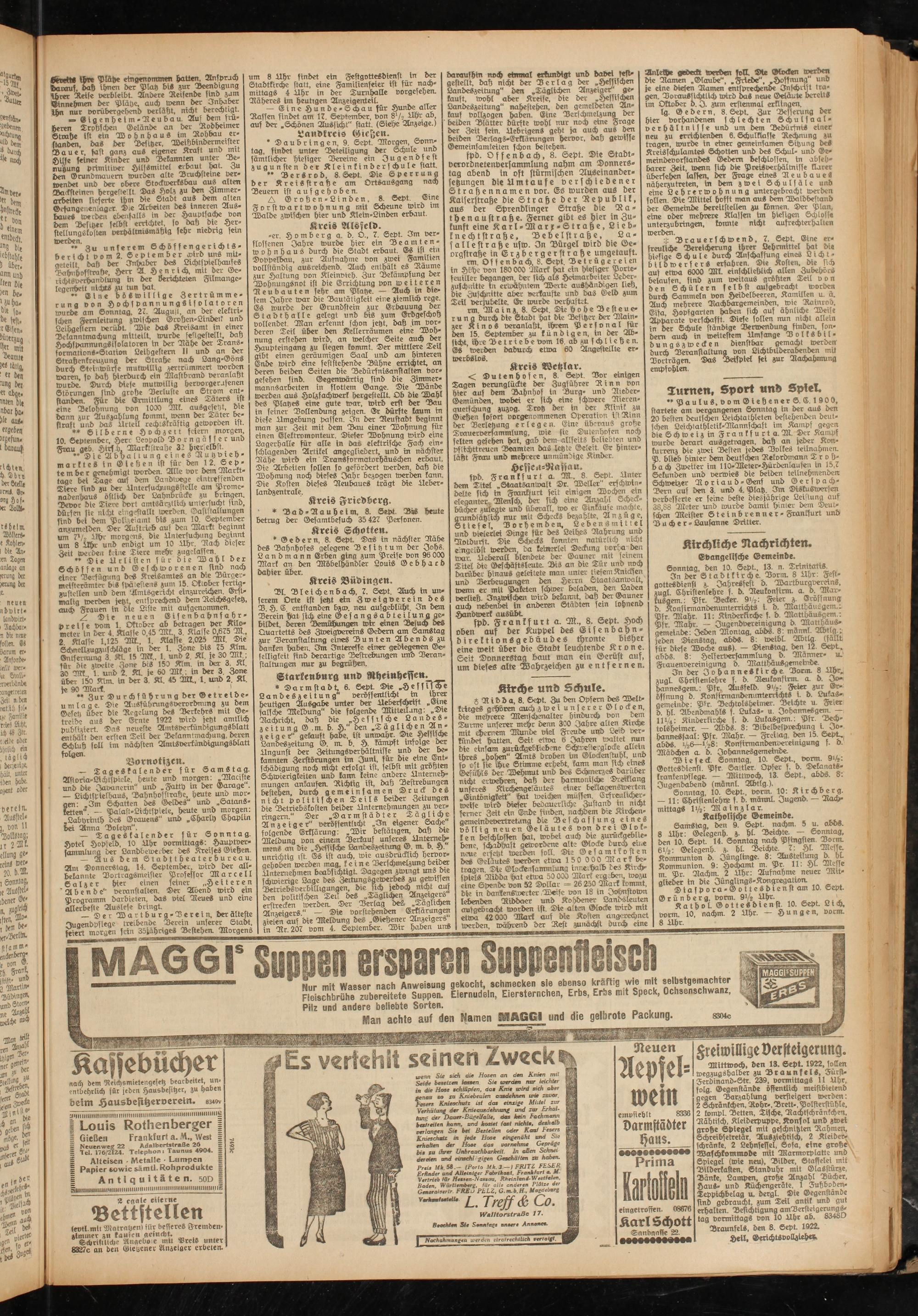 Kathol Gottesdienst. 10. Sept. L t ch, vorm. 10, nachm. 2 Uhr. — Hungen, vorm 8 Uhr. __________________________