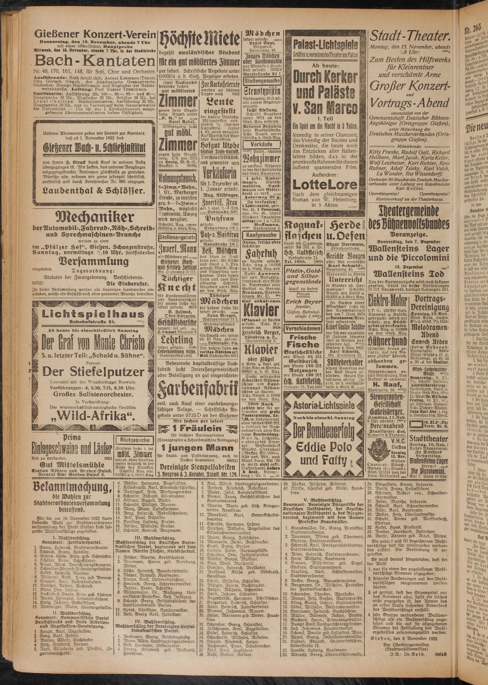 In Sachen einer Pflegschaft suche ich den Auienthaltsort des am 7. Juni 1870 zuSsrahRtiaoalPreu freu) geborenen Robert Gustav Schöler der sich vor ungefähr 30 Jahren längere Zeit in Giehen auf- gehalten hat. KI,D Giehen, 4. Nov. 1922.