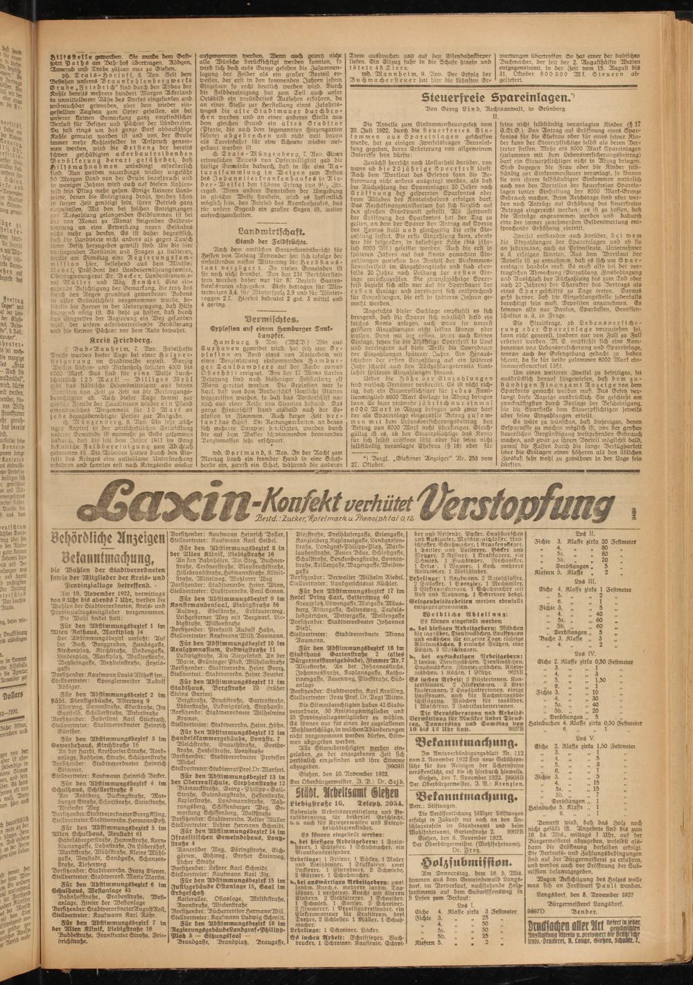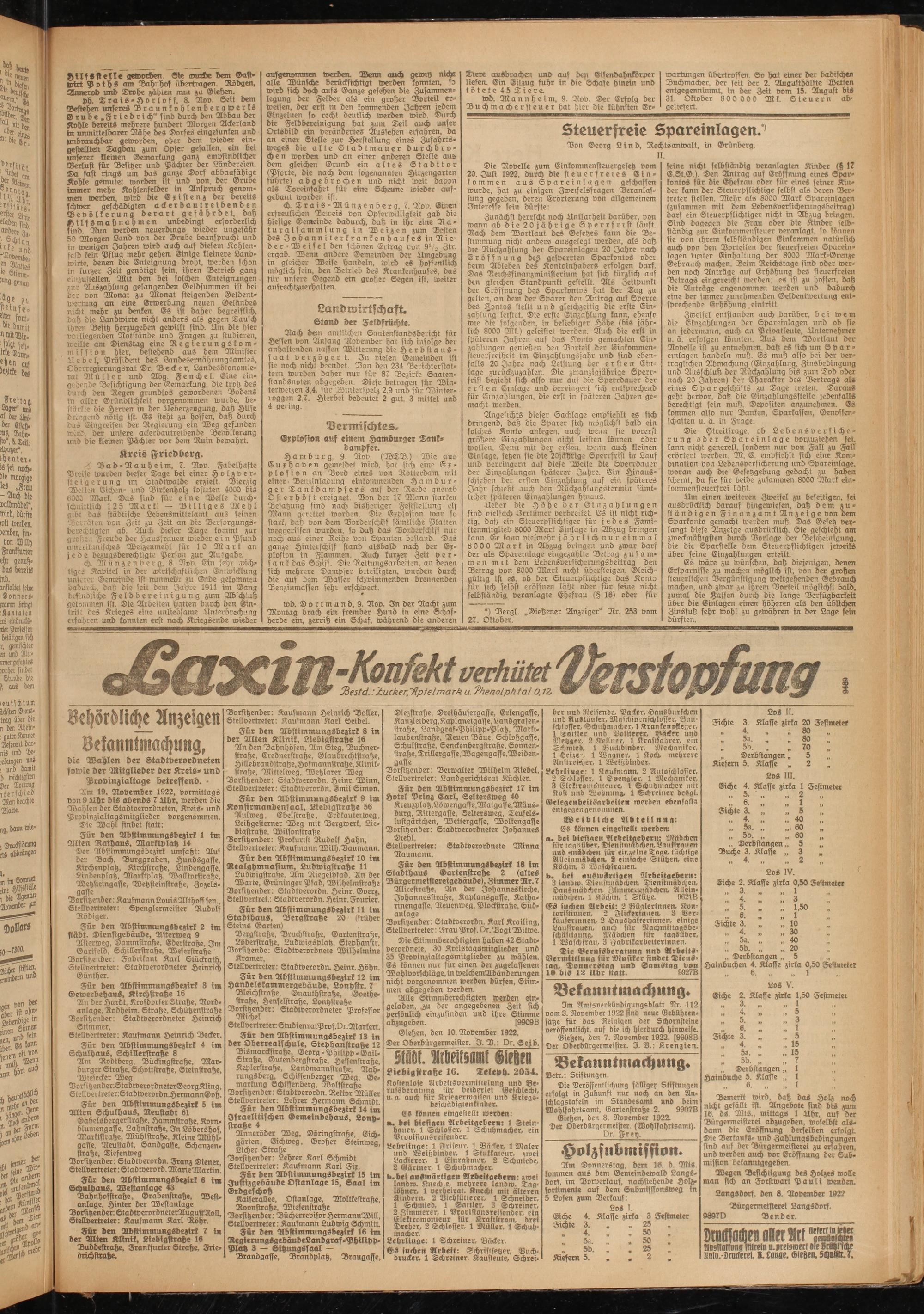 Gieften, den 7. November 1922. [9908B Der Oberbürgermeister. I. D.: Krenzien.