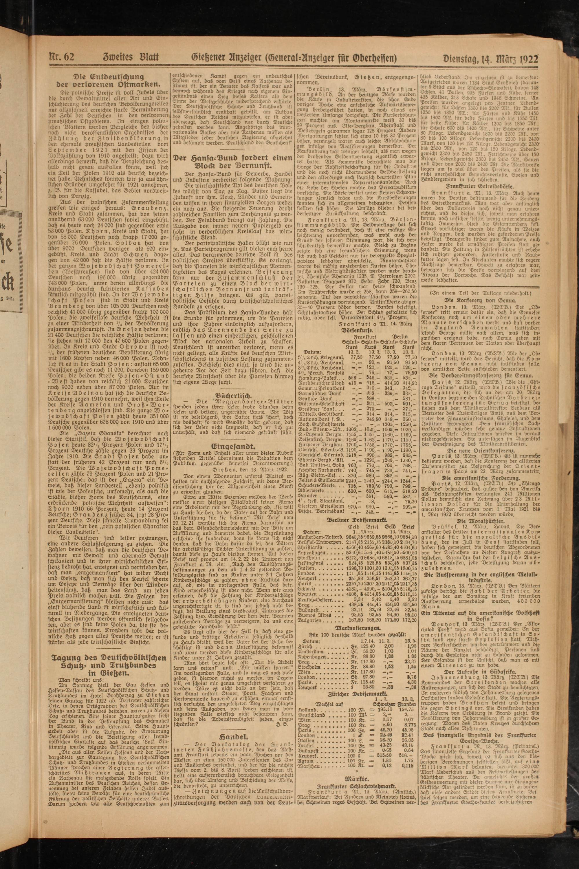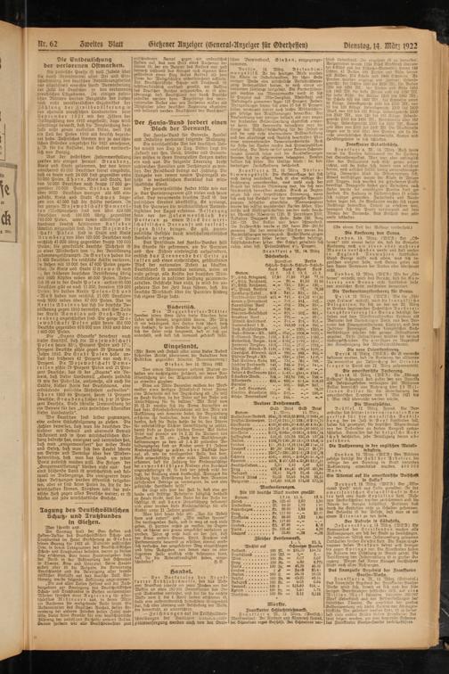 llr. 62 Swettes Blatt Gietzener Anzeiger (General-Anzeiger für Gberhesfen) Dienstag, 14. März 1922