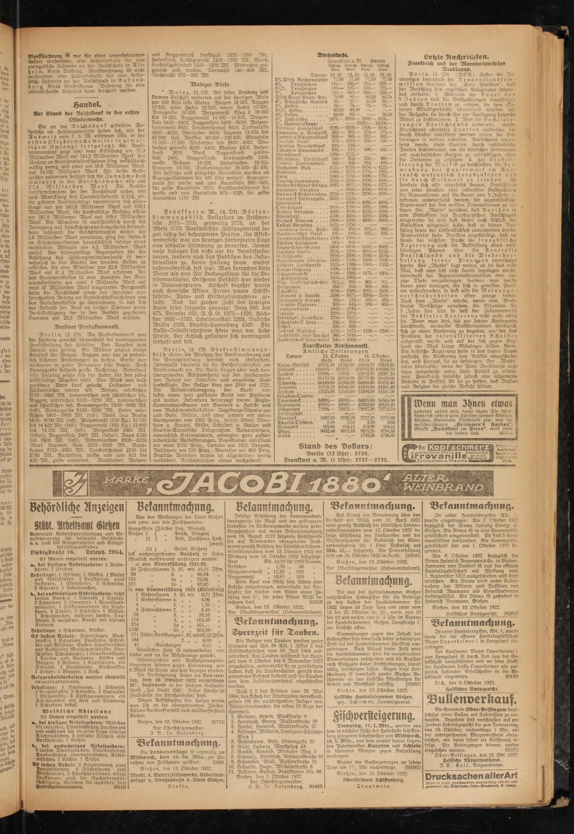 Gießen, den 10. Oktober 1922. 92776