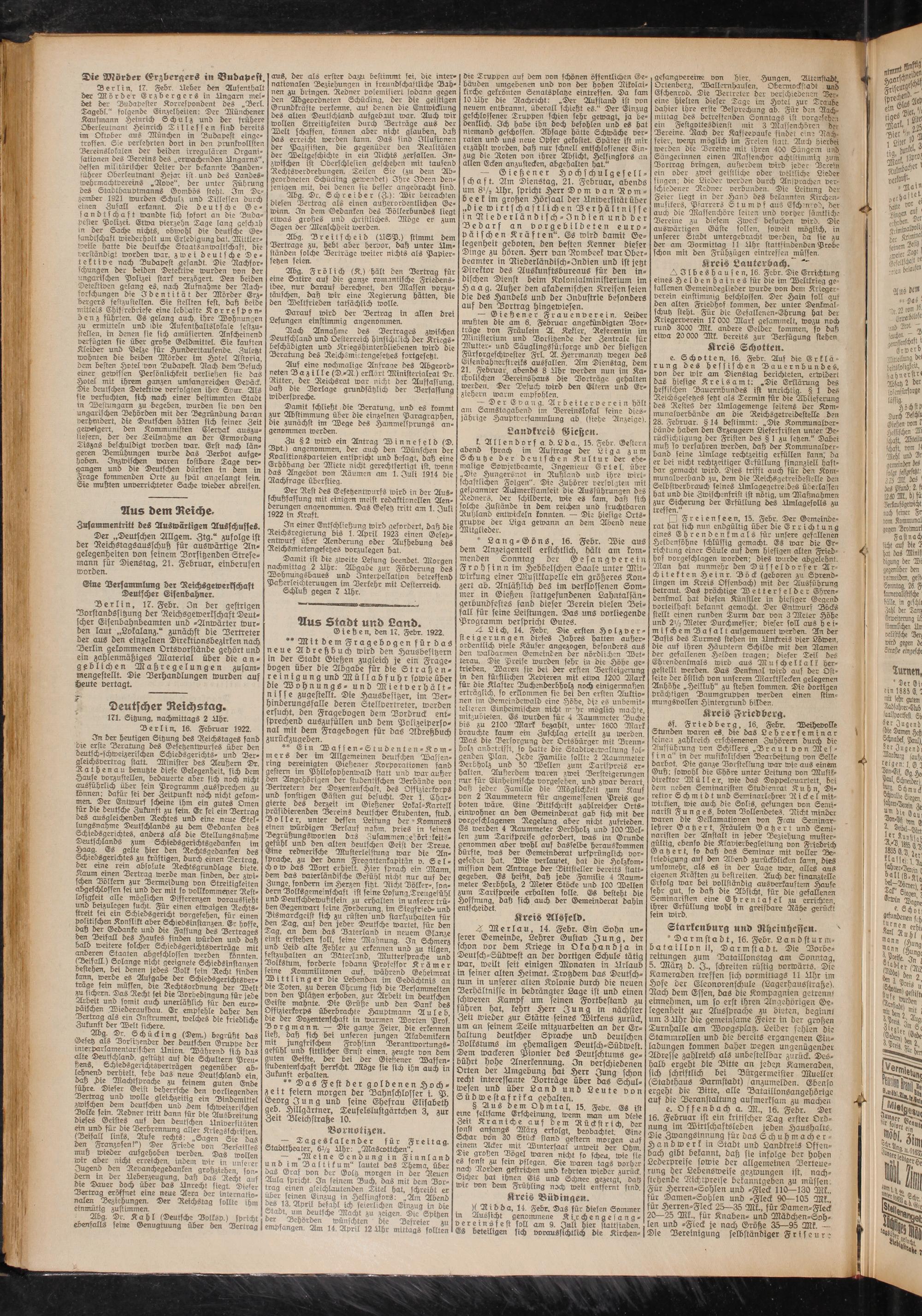 3n einer Entschließung wird gefordert, daß die Reichsregierung bis 1. April 1923 einen Gesetzentwurf über Aenderung oder Aufhebung des Reichsmietengesetzes vorzulegen hat.