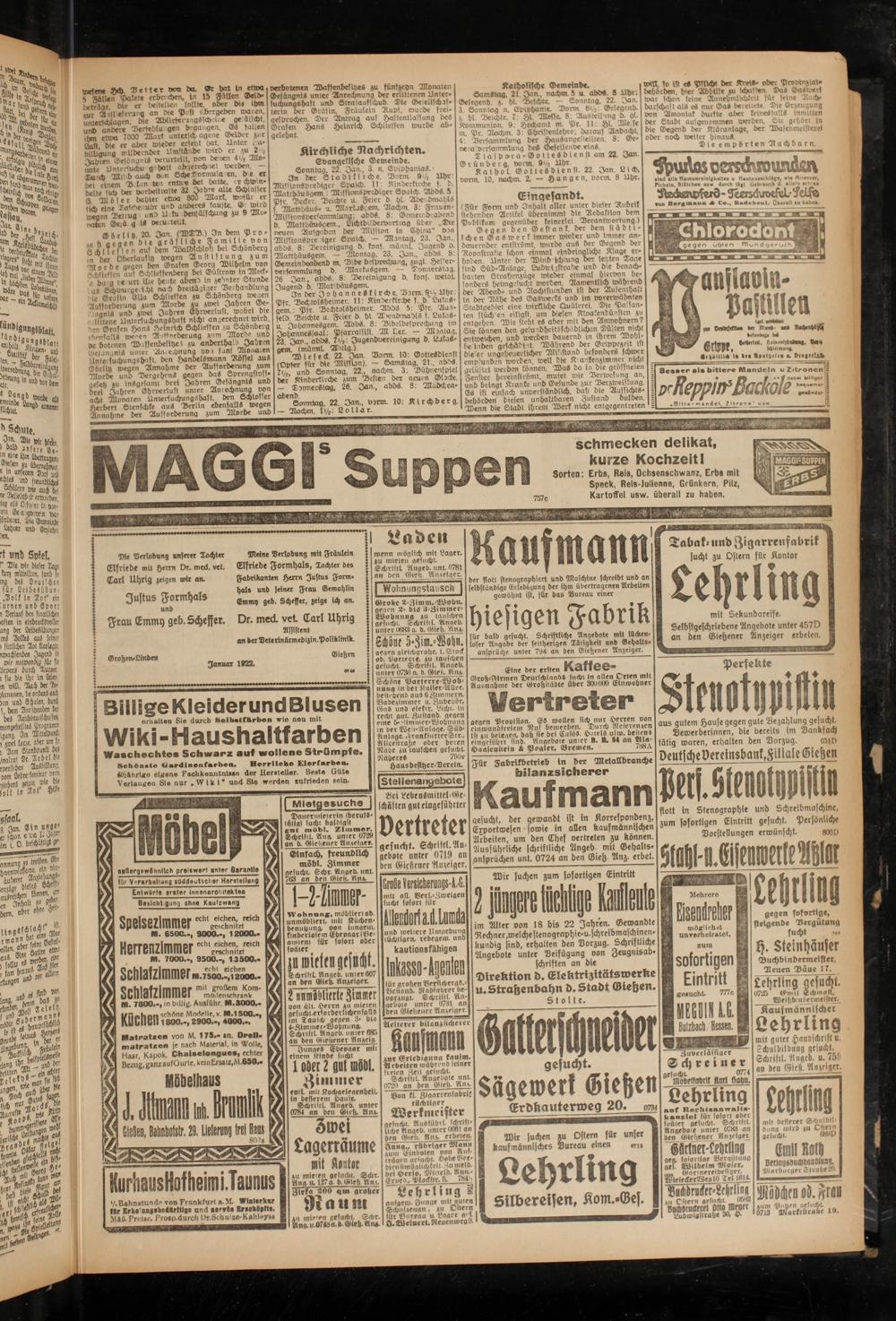 Kathol Gottesdienst. 22. Han. 2t<& norm. 10, n-achm. 2. — Hungen, norm. 8 ilb-r.