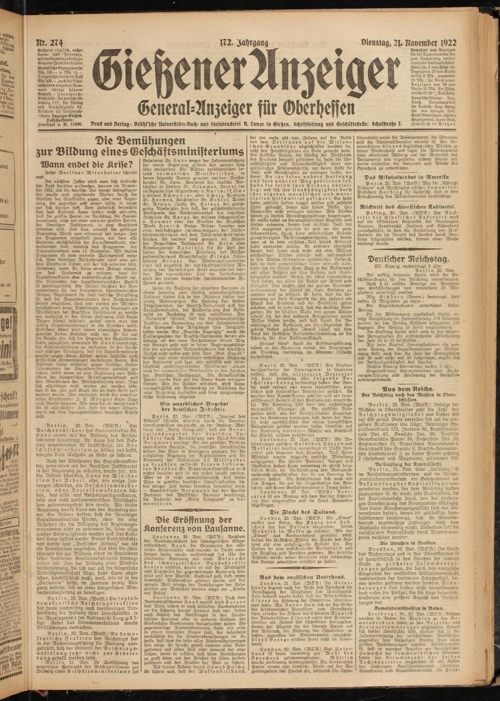 Dienstag, 2(. November 1922