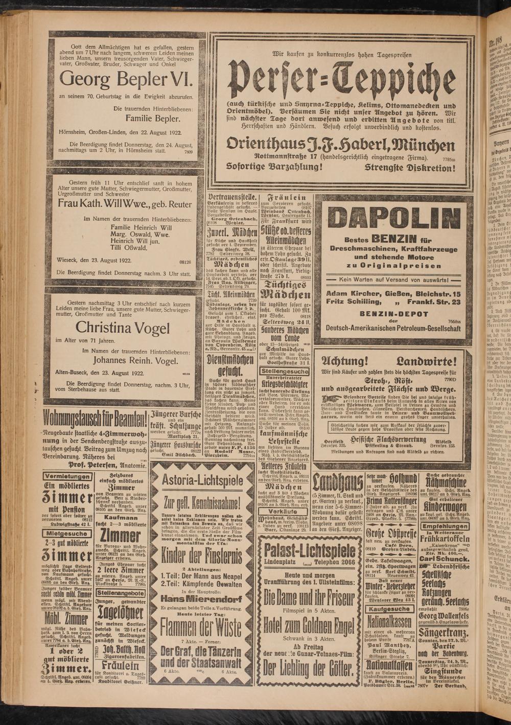 Hörnsheim, Großen-Linden, den 22. August 1922.
