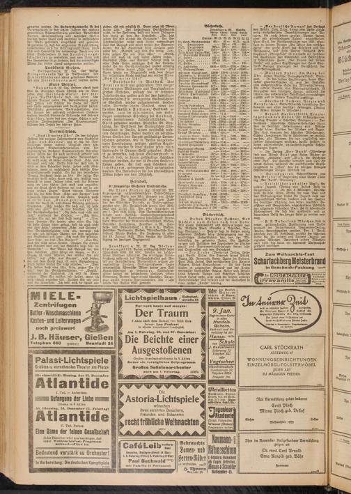 Die Stadt Gießen legt 50000000 Mk. 8'/rplvzenllge ccichZmündelsich:re Stadt-Obligationen zum Kurse von 98 Vs Prozent zur Zeichnung auf. Der Anleiheerlös dient zum Ausbau der städtischen Betriebe, zu Wohnungsbau- zwecken usw Die Anleihestücke lauten über 2000, 5000 und 20 000 Mk. Der erste Zinsschein ist am 1. Juli 1923 fällig. Das BerkaufSkonsortium besteht auS: Hessische Landes-Hypothekenbank a. G, Darmstadt, Kommunale Landesbank, Darmstadt, Direction der Disconto-Gesellschast, Gießen. Gebrüder Heichelheim. Frankfurt a. M.. Handels- und Gewerbebank, c. G. m. b. H.. (Sieben, Hessischer Bankverein, Gießen, Mitteldeutsche Cve- ditbank, Filiale Gießen. Die Zeichnung ist offen bis 18. Januar 1923. Man beachte die Ankündigung Im heutigen Anzeigenteil.