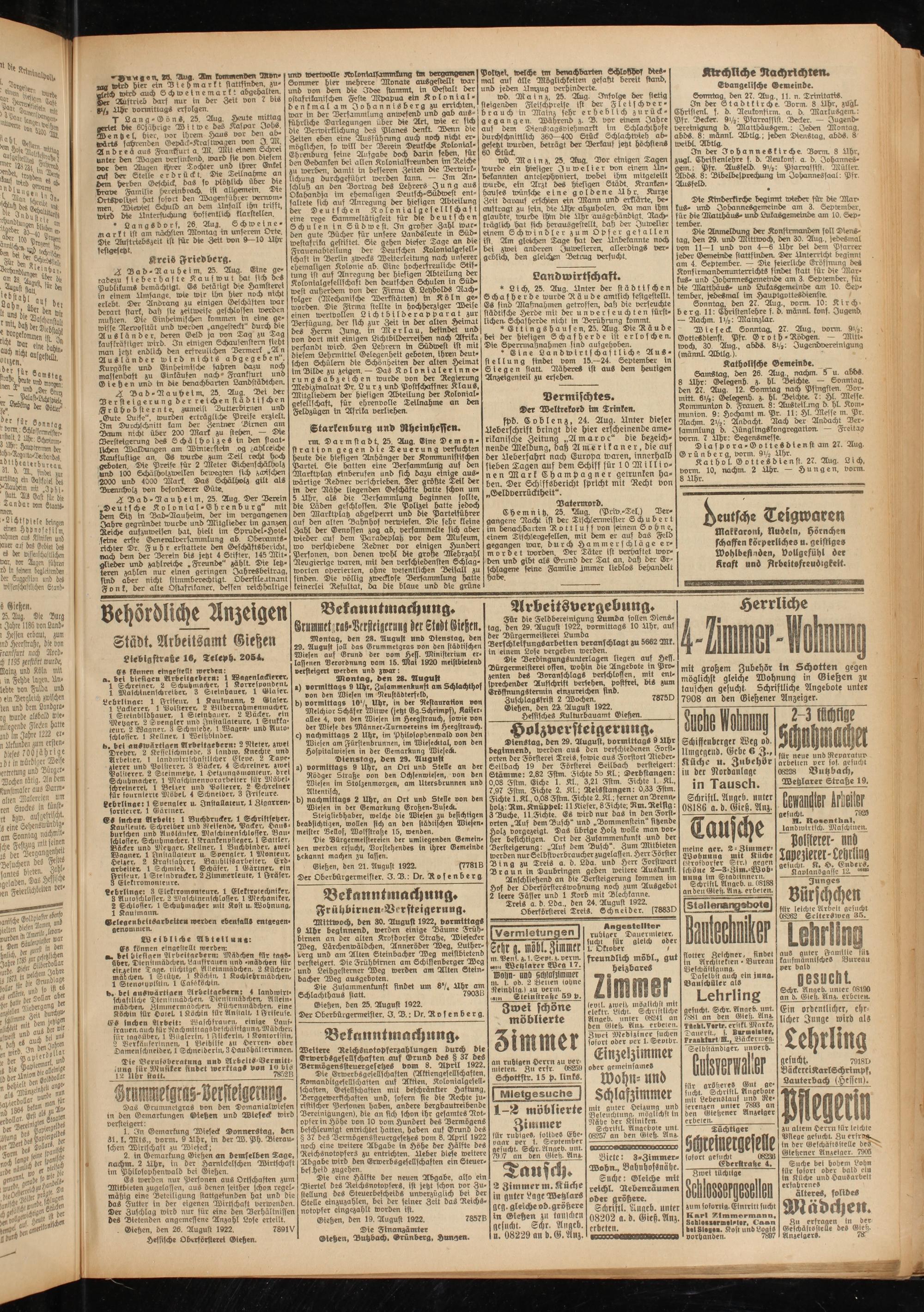 Kathol. G o ttesblenst. 27. Aug. Lich, vorm. 10, nachm. 2 Uhr. — Hungen, vorm. 8 Uhr.