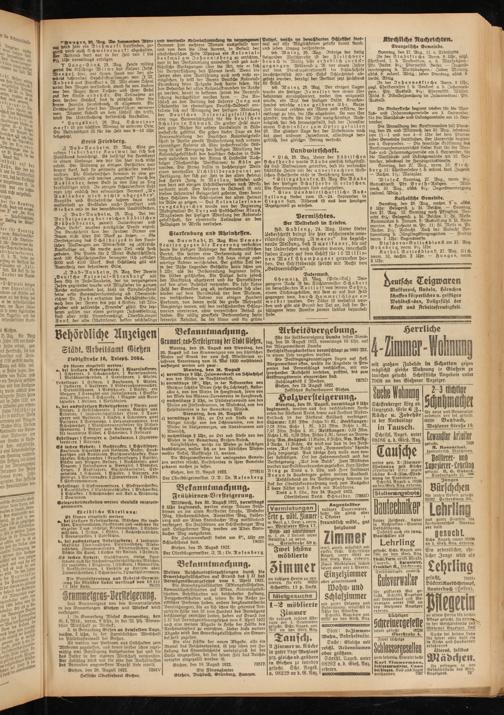 Für die Feldbereinigung Lumda sollen Dienstag, den 29. August 1922, vormittags 10 Uhr, auf der Bürgermeisterei Lumda