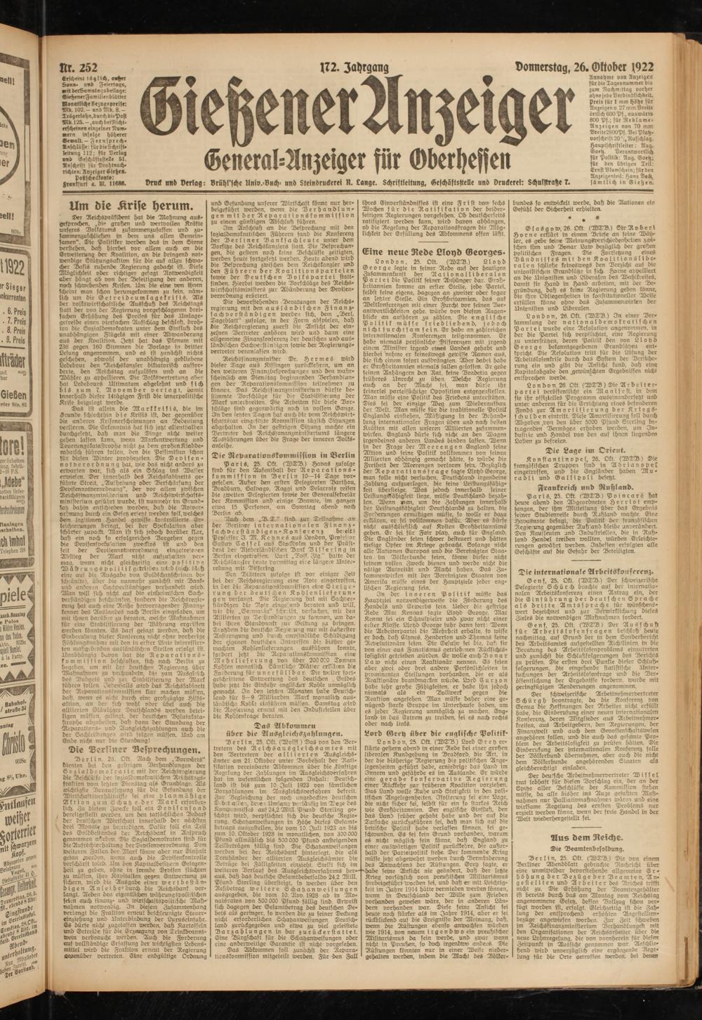 Erscheint täglich, mcher Sonn- und Feiertags, mit derSamstagsbeilage: GiehenerFamilienblätter Monatliche Vezvaspreife: Mk. 102.- undMK. Z.- Trägerlohn,durch dieDost Mk. 125.-.auch beiNtcht- erscheinen einzelner Nummern infolge höherer Gemalt.- Fernsprech- Anschlüsse: fürdieSchrift- kthtng 112; für Verlag exb Geschäftsstelle 51. Anschrift für Drahtnach- richten: Anzeiger Bietzen.