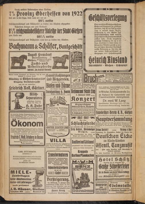 (Einer verehrten Einwohnerschaft von Gietzen und Umgegend zur gefälligen Kenntnis, datz ich mit dem heutigen Tage in meinem Hause, Gießen, Kirchenplatz 6, eine Motor- und Fahrradhandlung nebst modern eingerichteterReparaturwerkstatt eröffnet habe. Durch langjährige praktische Erfahrung bin ich in der Lage, sämtlichen in dieses Fach ein- schlagenden Arbeiten gerecht zu werden und sichere ich meiner Kundschaft reellste Bedienung zu. Ich bitte, sich von meiner Leistungsfähigkeit zu überzeugen *** Hochachtungsvoll