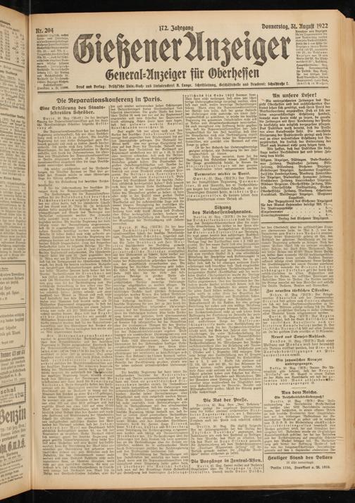 Verlag des Gießener Anzeigers.