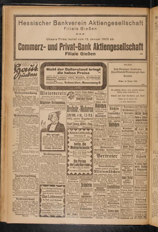 Unsere Firma lautet vom 15. Januar 1923 ab
