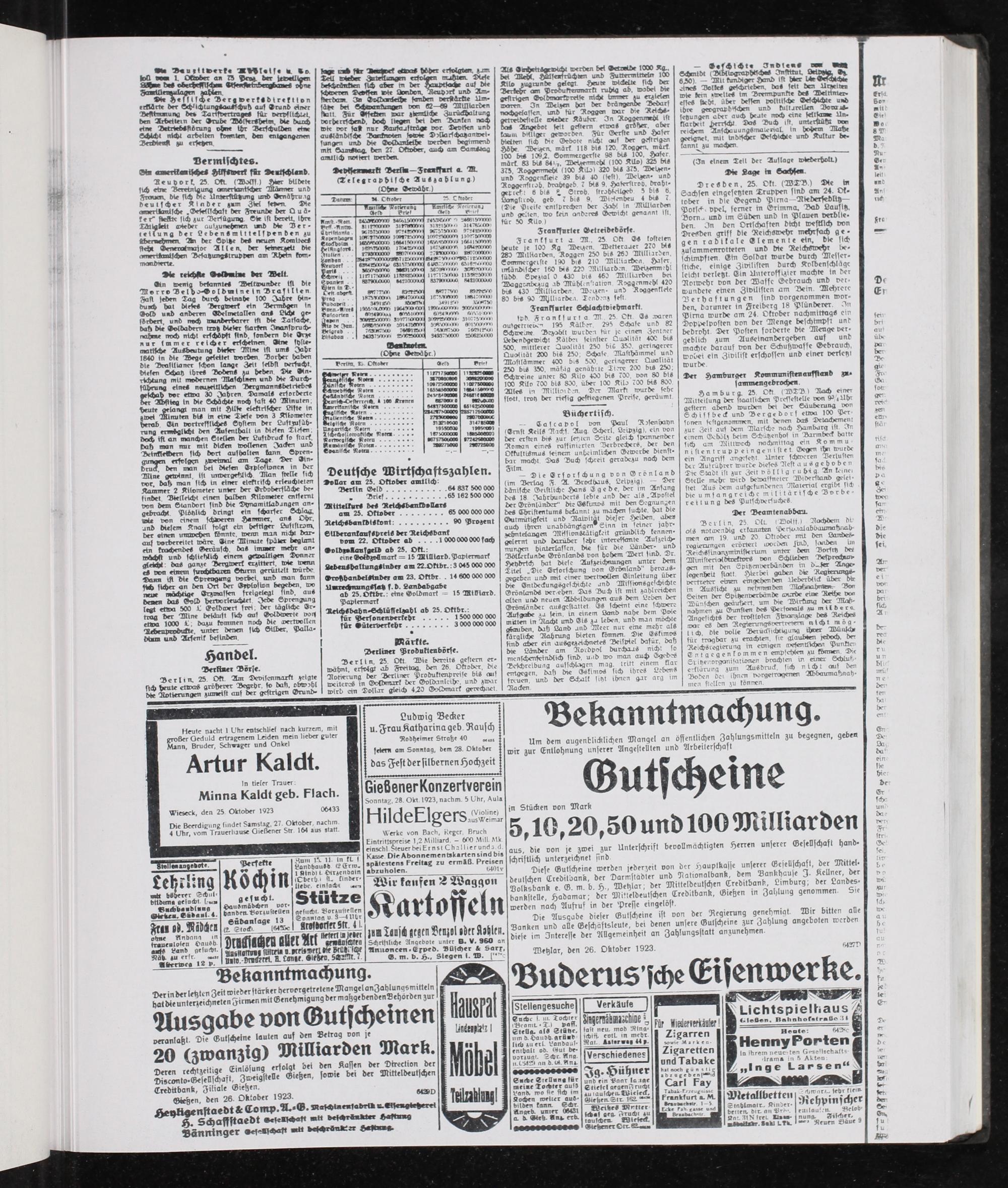 Wieseck, den 25 Oktober 1923