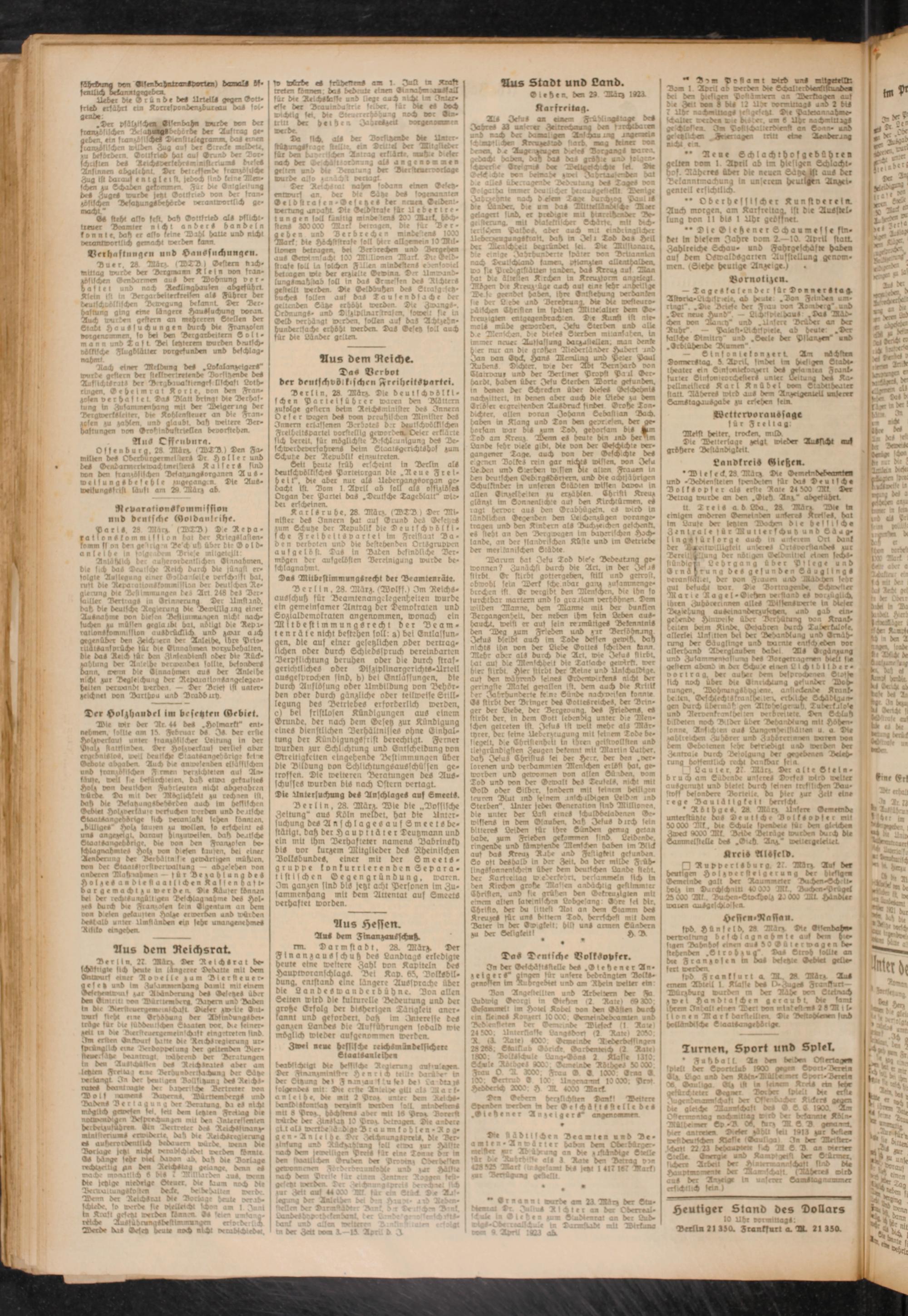 In Der Gdchäftsstelle des .Gießener An- zeiaers^ dnwn für untere bedrängte» Volls- genelten bn Ruhrgebiet unb am Rhein weiter ein