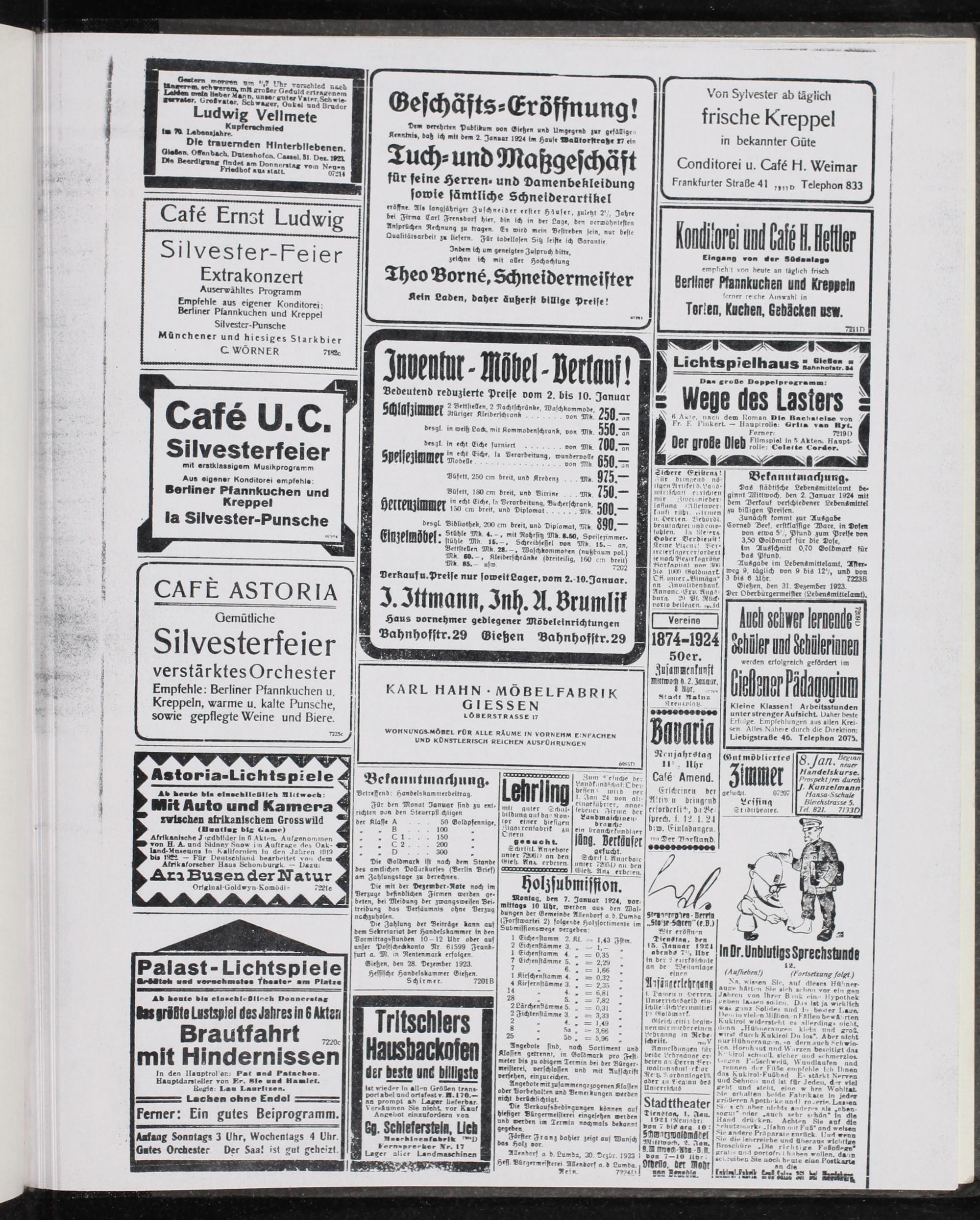 vErKausu.Preise nur soweitLager, vom 2. lO.Ianuar. 3.3ttmann,3nl,.2I.Brnmlif vornehmer gediegener Möbeleinrichtungen Vahnhofstr.29 Giehen Bahnhofstr.29
