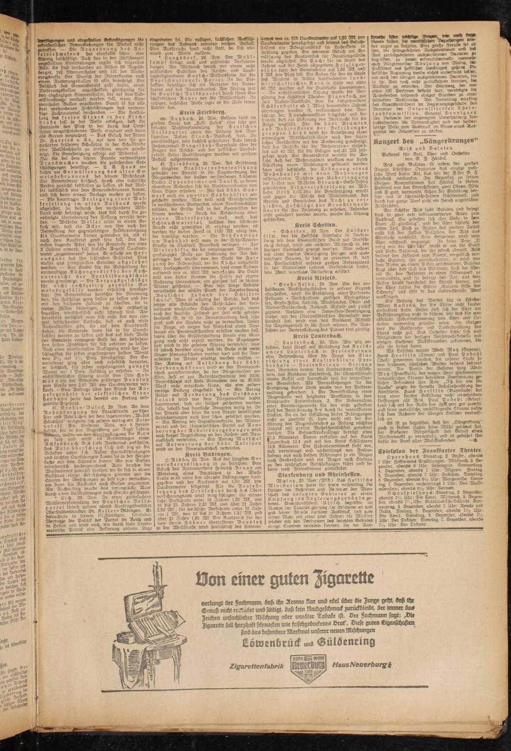 • Lich. 28. Rov. 3n einer gutbesuchten Wählerversammlung der Deu t sche n D o l ks- ratlel sprach gestern abend LandtagSkanbibat Oberstudiendirckwr Dr. Keller- Büdingen. Er beleuchtete in seinem l'/.stündigen, fcliclnben Qjortragc die Politik der Partei bn Reich unb in Hessen unb wies nach, wie durch diese Strefe- mannsche Politik eine Besserung unserer Lage
