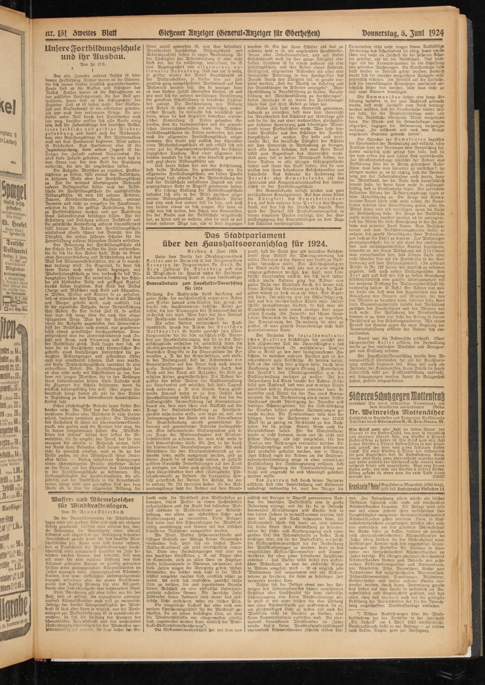ur. IN Zweites Blatt Gießener Anzeiger (General-Anzeiger für Gberheffen)Donnerstag, 5. Mi (924
