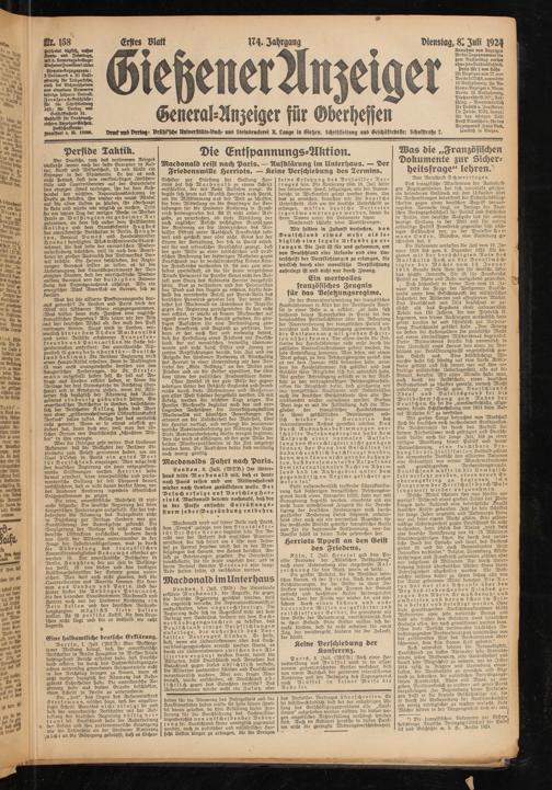 keine Ersetzung des Versailler Vertrages sein. Die Konferenz vom 16. Juli hätte den besonderen Zweck, festzulegen, wie der Dawesbericht in Wirksamkeit gesetzt werden könne, Um das zu erreichen, brauchen wir die deutsche Unterschrift. Und um die deutsche Unterschrift zu erlangen, müssen deutsche Vertreter irgendwo empfangen werden, damit sie ihren Ramen unter die Dokumente sehen.