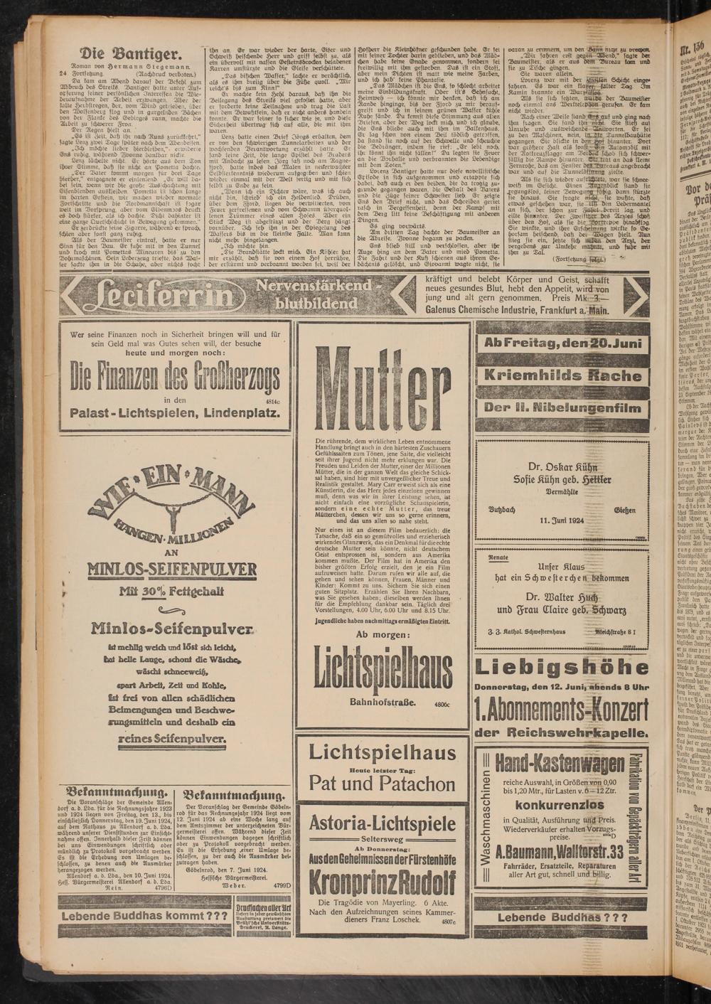 Allendorf a. d. Lda., den 10. Juni 1924. Hess. Bürgermeisterei Allendorf a. d. Lda.