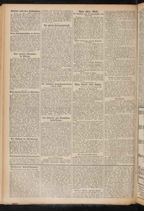 ,,Das Jugendgericht in Halle Verurteilte den 16jährigen Sohn des Fabrikanten Mönkeberg in Zschornewitz, der in der Werkstatt seines Vaters am Lohntage einen Arbeiter du rch H a mmers chläge tötete und dann beraubte, zur gesetzlichen Höchststrafe von zehn Jahren Gefängnis.
