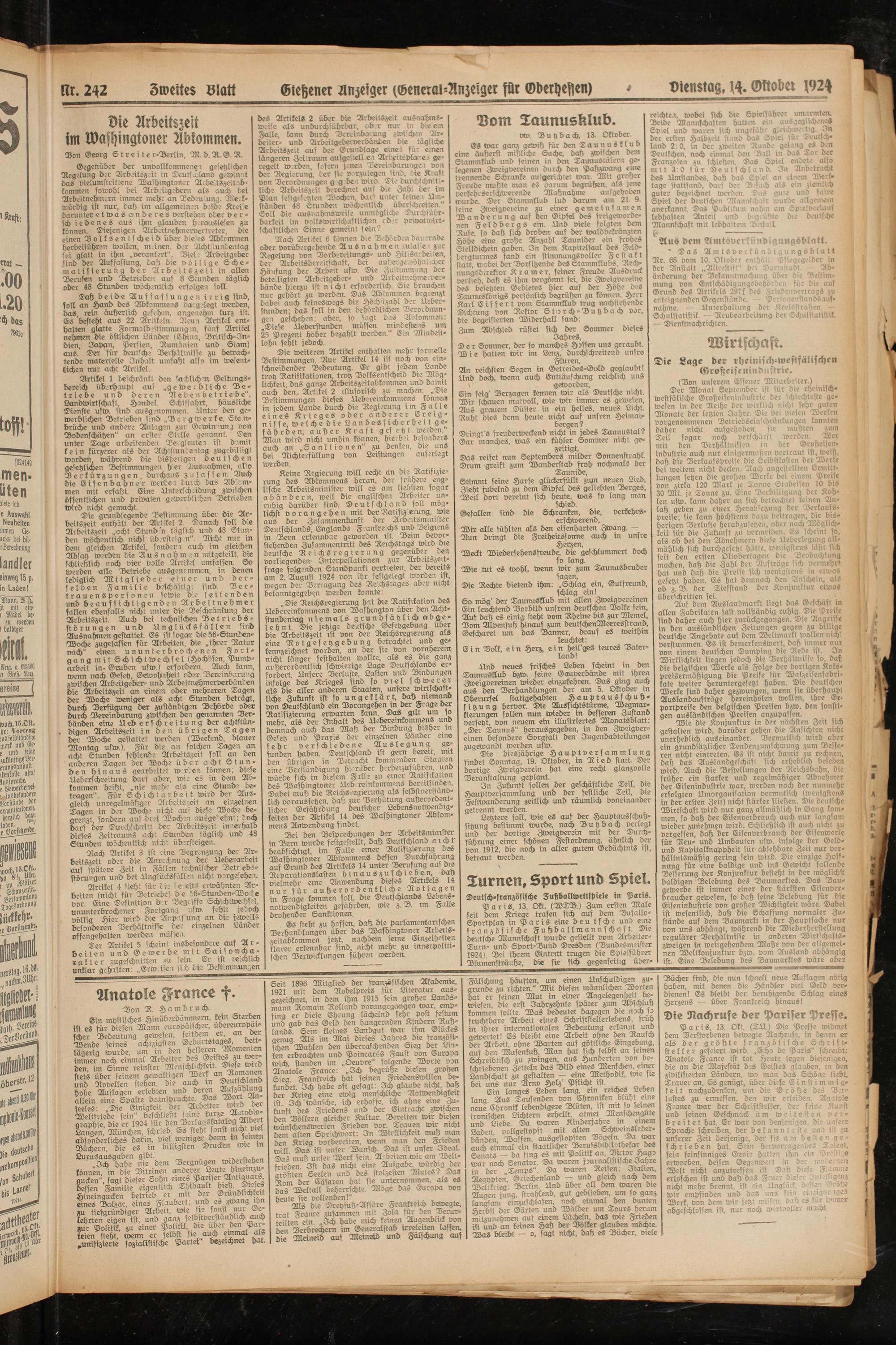 llr. 242 Zweites Statt Etetzener Anzeiger (General-Anzeiger für Gberhetzen) » Dienstag, 14. TNober 1924