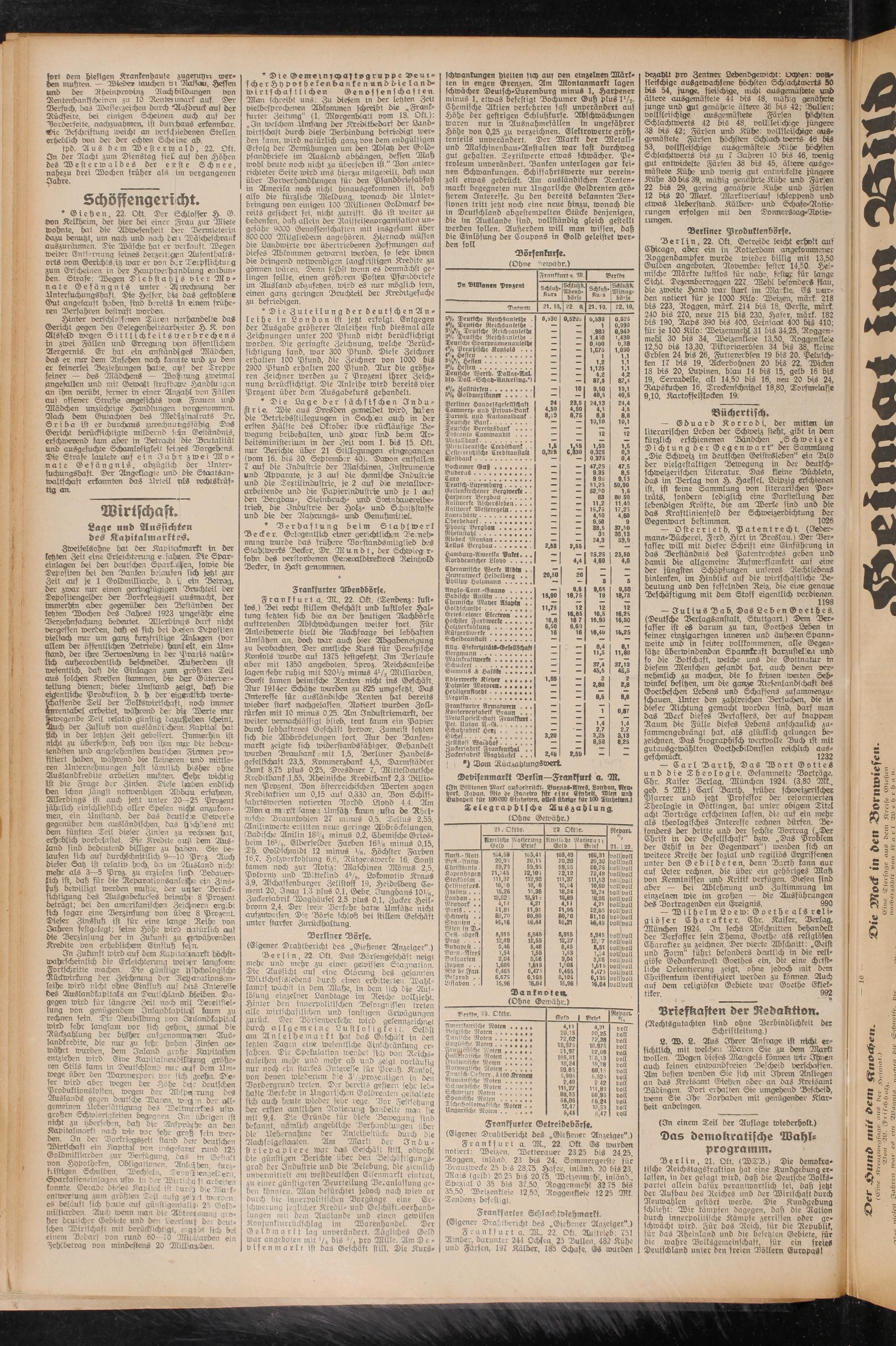 (Eigener Drahtbericht des „Gießener Anzeiger".) Frankfurt a. M.. 22. Oft. Austrieb: 751