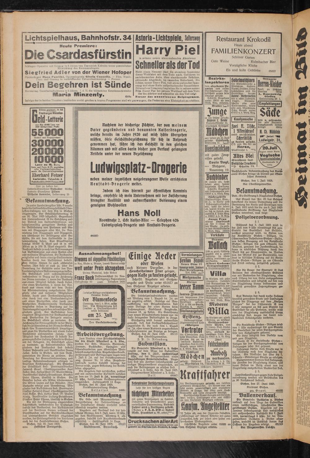 Gießen, den 1. Juli 1925. Der Oberbürgermeister.