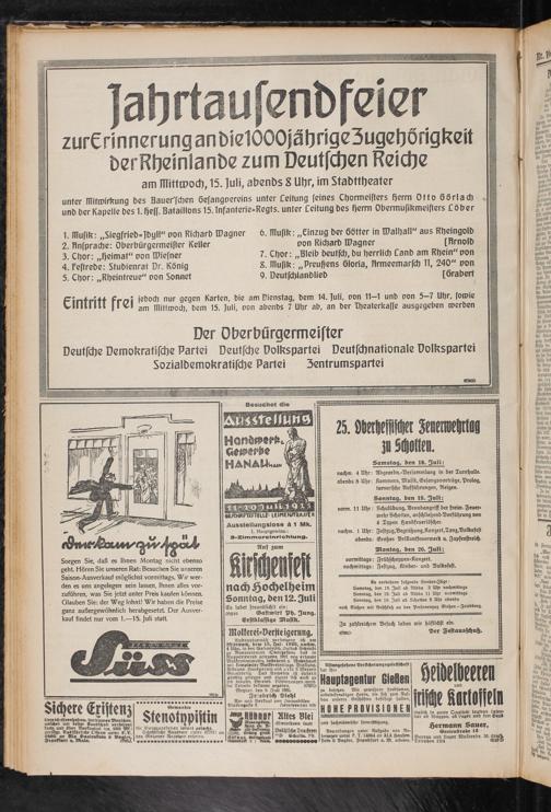 Jaljrtaufenbfeicr zur€rinnerunganbie1000jäl)rige3ugehörigkeit berRbeinlanbe zum Deutschen Reiche