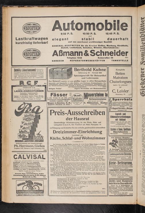 NB. Vorstehendes Preis-Ausschreiben gibt die Geschäftsstelle Gießen, Lindenplatz 1, bekannt, bei welcher zur gegebenen Zeit der ausschließliche Vertrieb der preisgekrönten Möbel erfolgt.