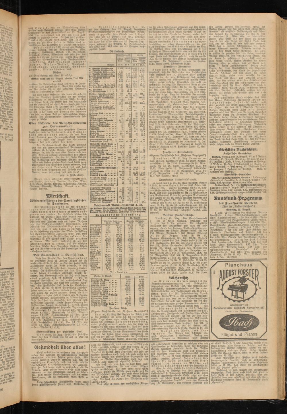 Berlin, 13. Aug. Der Produktenmarlt