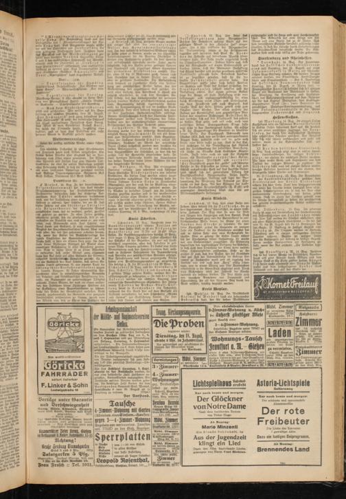— Tageskaleuder für Samstag. Lichtspielhaus. Bahnhofstraße. .Der Glöckner von Aoire Dame", — Astoria-Lichtfpiele: „Der rote Smibeutcr".