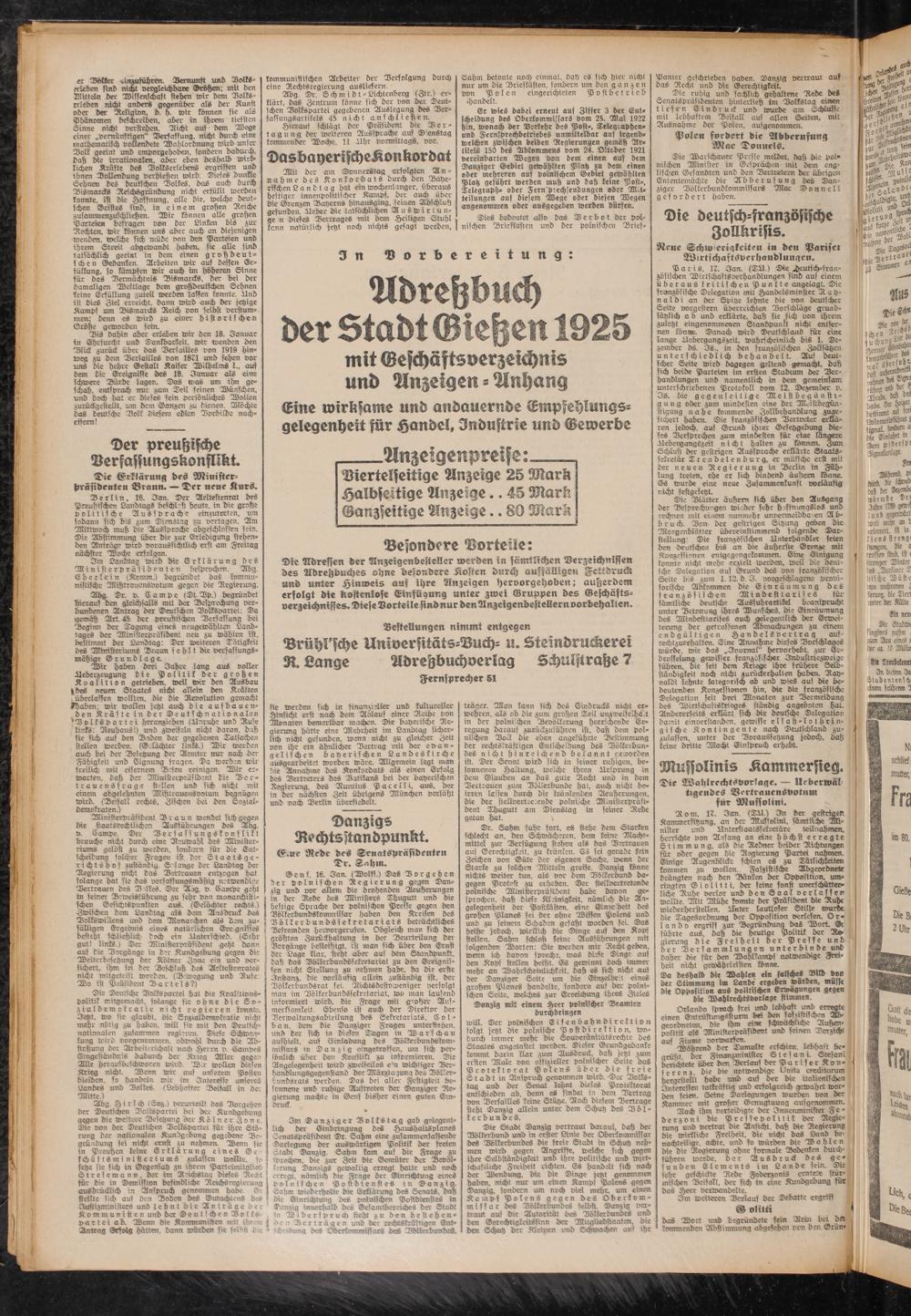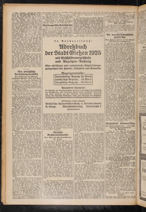 Adreßbuch der Stadt Gießen 1925 mit GeschäftSVerzLichms und Anzeigen - Anhang