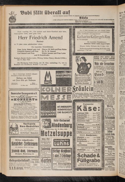 Butzbach, Rendel, Großen-Linden, Wirberg, Soldau (Hann.), Allendorf (Dillkr.), den 17. März 1925.