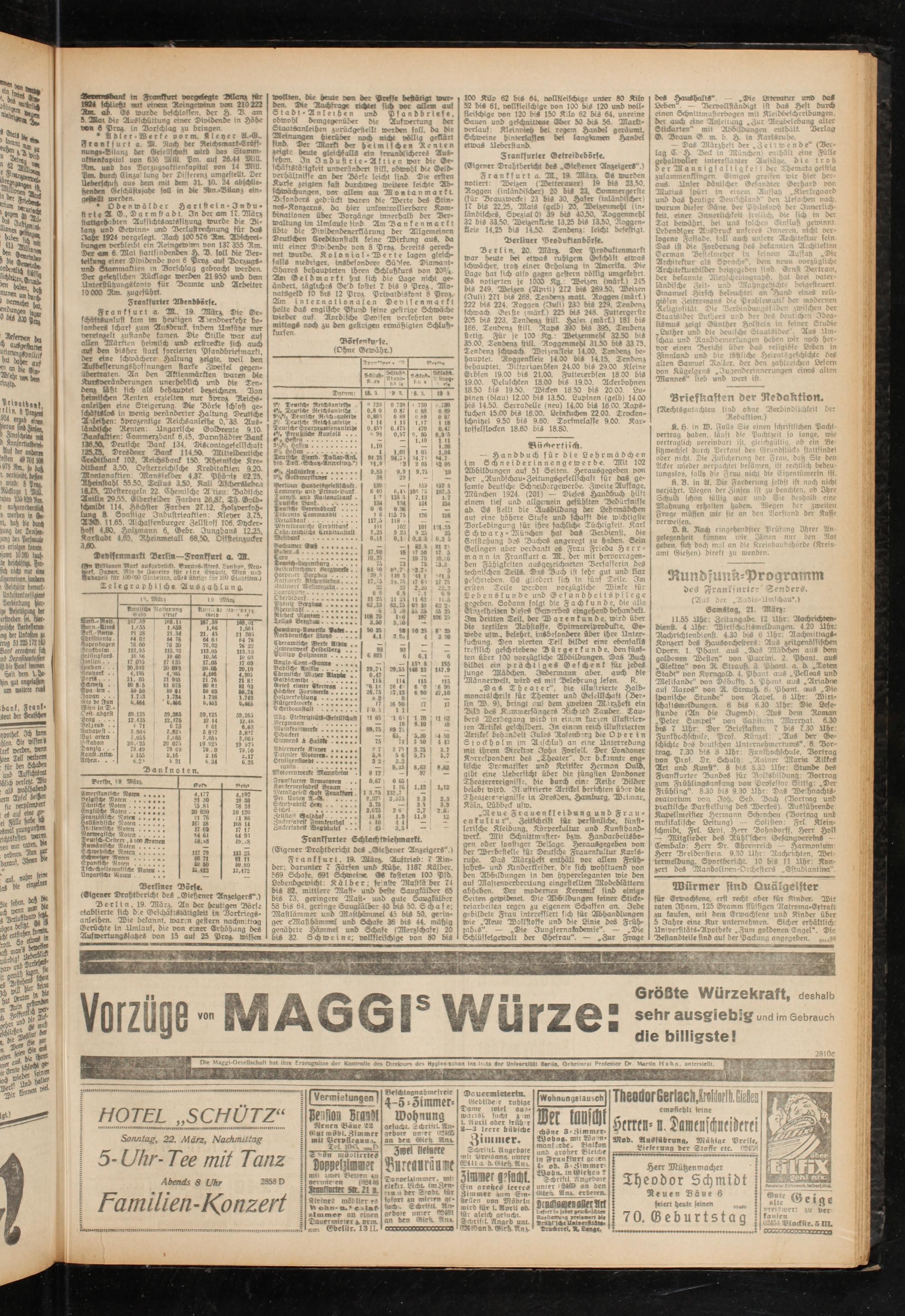 2eretn<ban! tn Frankfurt norgefegte Bilanz fftr 1924 schließt nut einen Reingewnm von 210222 Rur ab Es wurde beschlossen, der H. D. am 5. Mai die Ausschüttung einer Dividende in Höhe von 6 Prvz. in Dorschlag zu bringen.