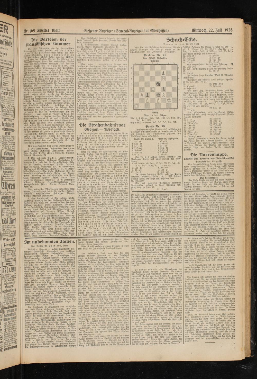 Alle für die Redaktion bestimmten Mitteilungen. Gelungen usw. sind zu richten an die r Lchachredallion des .Gießener Anzeigers".