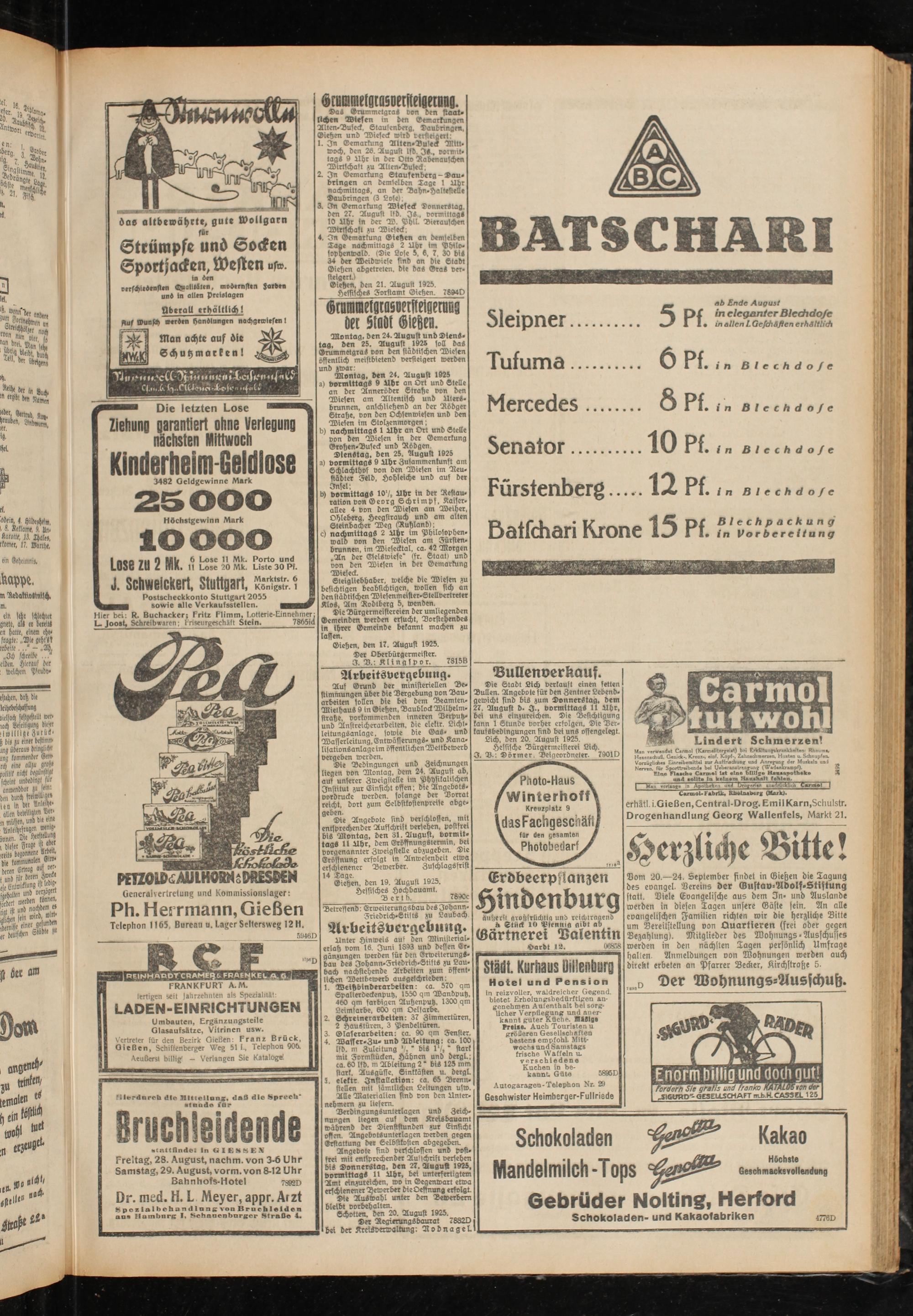 Giehen, den 17. August 1925. Der Oberbürgermeister.