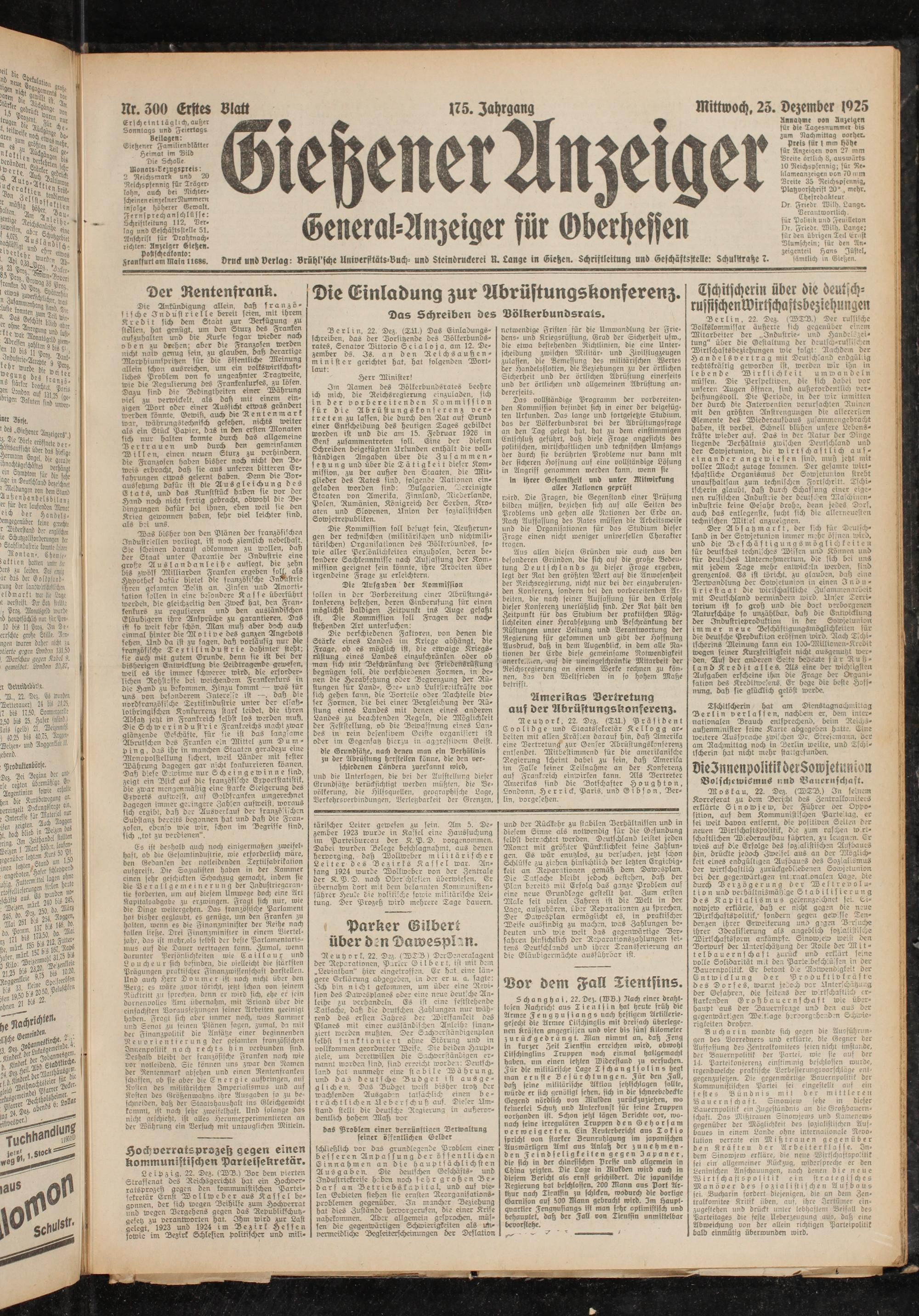 Mittwoch, 23. Dezember 1925