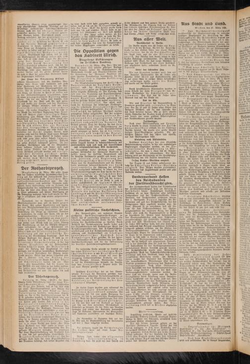 Das Schwurgericht f ü r Ober» Hessen hall unter Dem Vorsitz Des. Landgerichts-^ Direktors Kramer vom 30. März 2. April Sitzungen ab. Es kommen folgende Fälle zur Verhandlung: Montag: Anklage gegen Meyer (Gambach) wegen Meineids: Dienstag: Anklage gegen Schäfer und Zöller (Gambach) wegen Meineids; Mittwoch: Anklage gegen Den 2anD- wirt Stumps unD Witwe Albach (HattenroD) wegen KinDesnwrDs: Donnerstag: Anklage gegen Reubig und Balzer wegen Brandstiftung.
