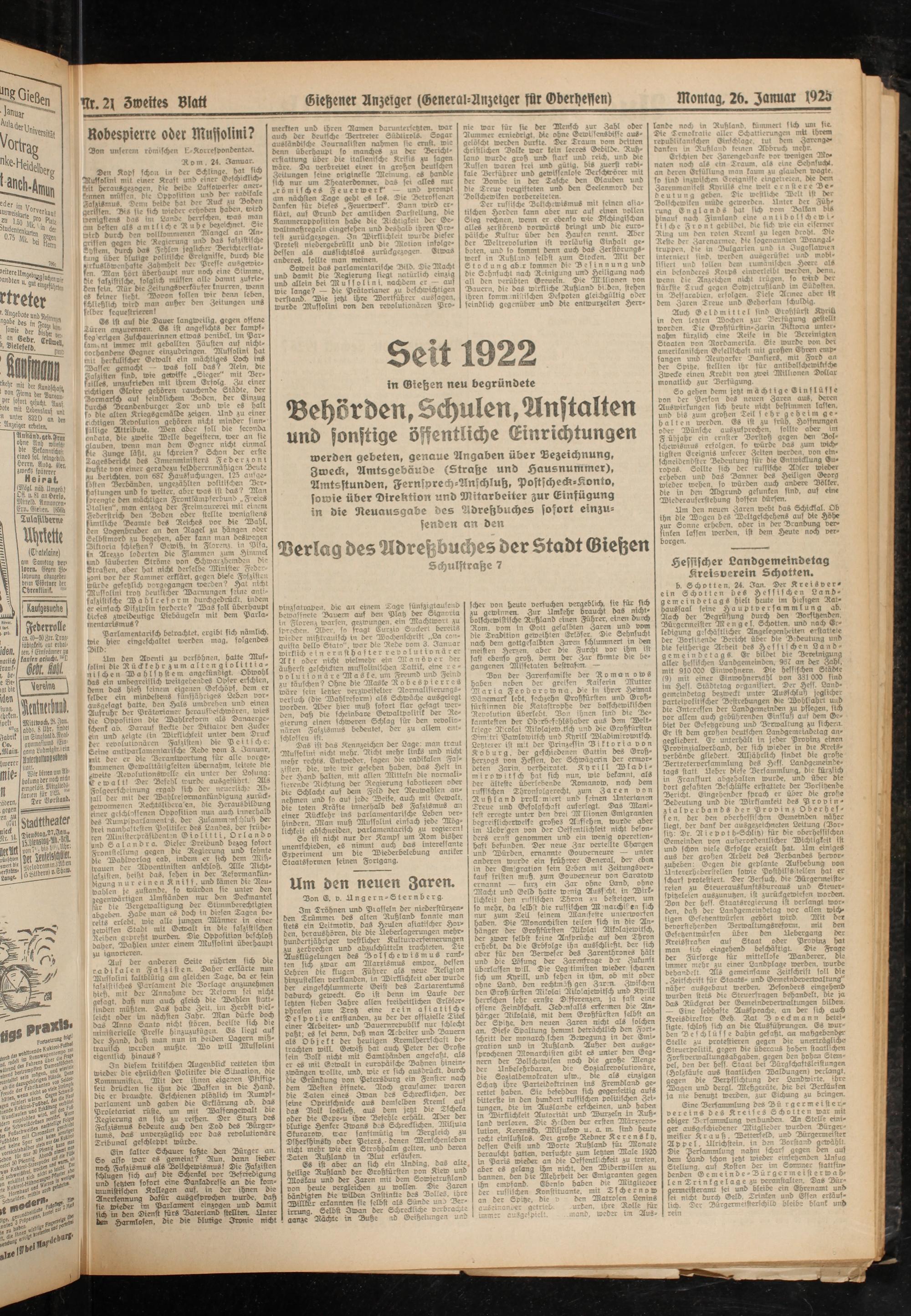 Montag, 26. Januar 1926